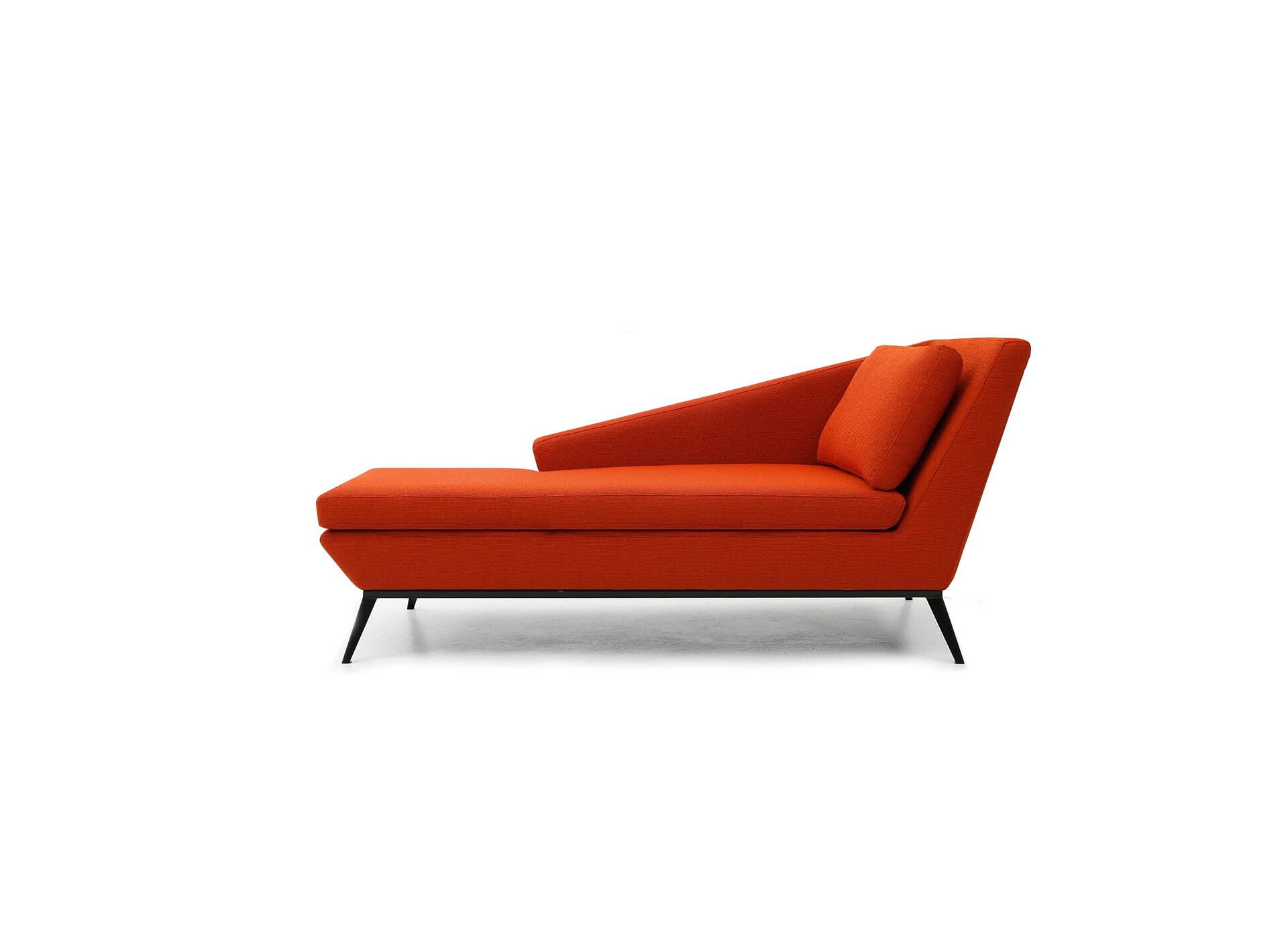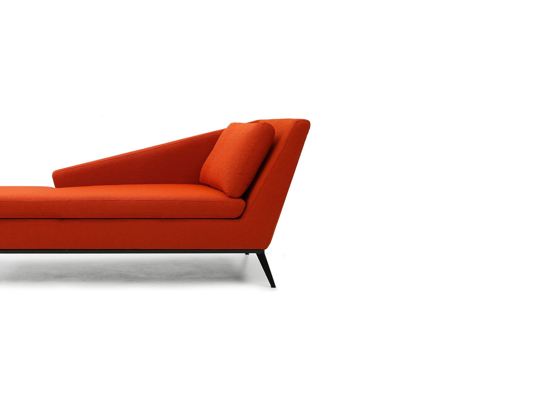 The Cleo is a unique, angular reinterpretation of the chaise lounge, by designer Jacques Borris. It stands on a set of gently angled, powder coated legs and is filled with a blend of polyester and natural goose feathers and down. Cleo is available in left and right facing versions. Warranted to meet or exceed industry standards.