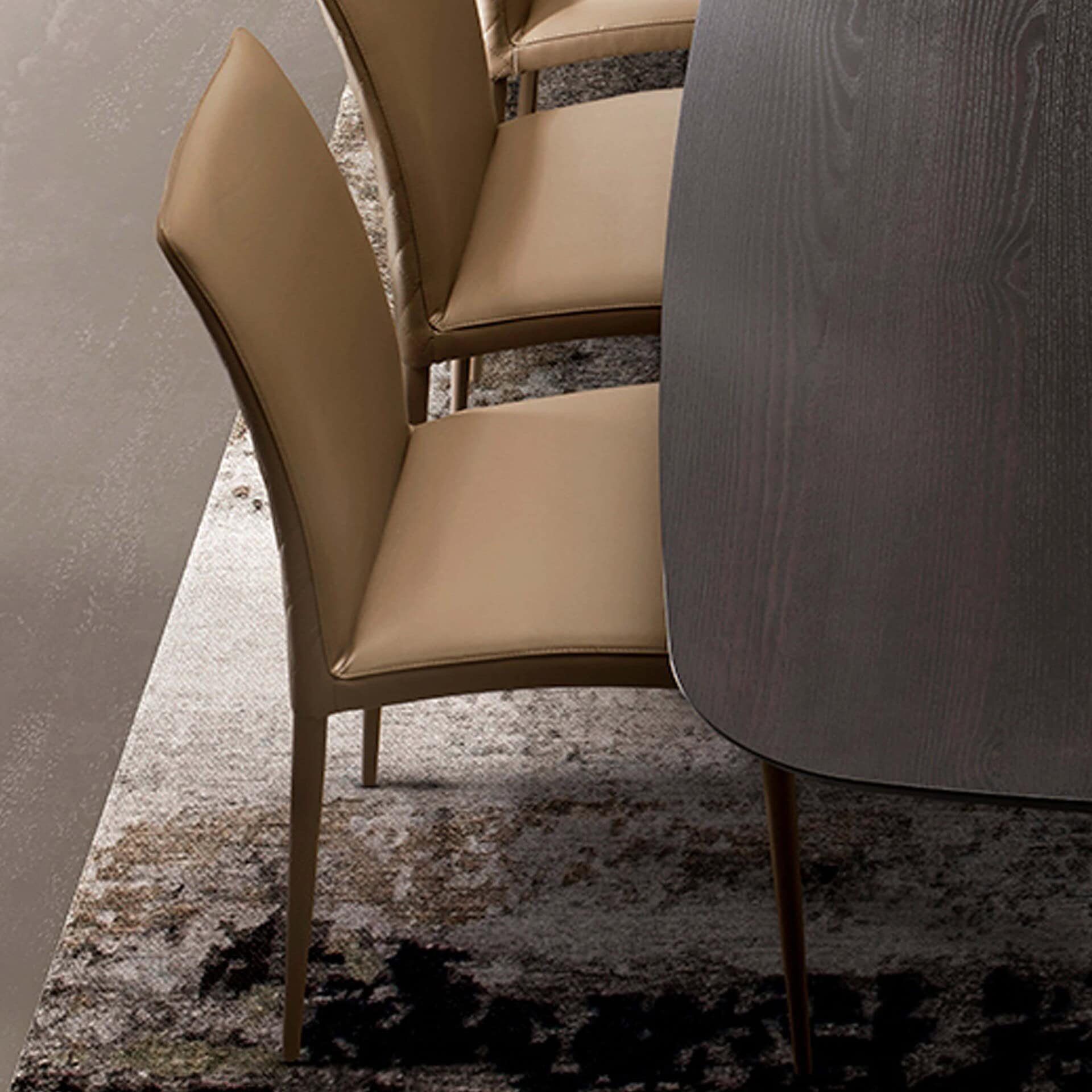 A prestigious collection of upholstered chairs where design and comfort unite creating a perfect balance. The Asia Chair stands out for its elegant and clean shape, a contemporary classic. Available in leather, eco-leather, or fabric. The cover cannot be removed.