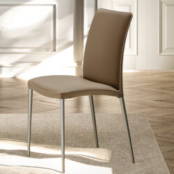 A prestigious collection of upholstered chairs where design and comfort unite creating a perfect balance. The Asia Edge Metal Legs Chair is extremely refined thanks to its piping drawing its entire shape, as well as metal legs that add dimension to the space. Available in two heights in leather, eco-leather, or fabric. The cover cannot be removed.