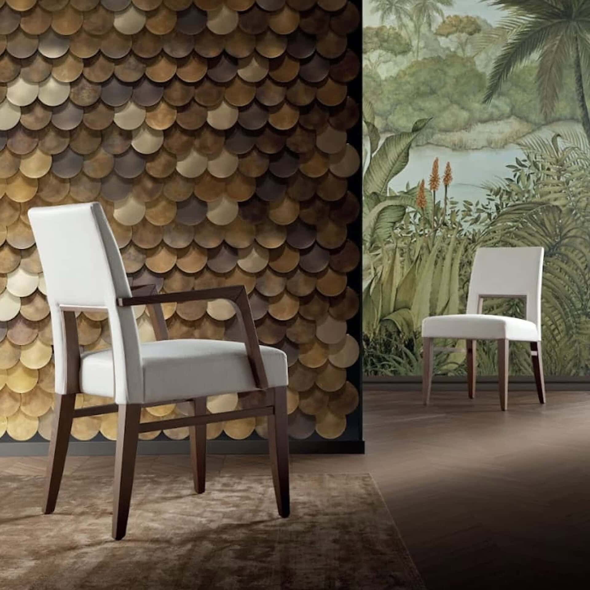Blending durability with sophistication, the Blues chair is built with substantial structural thickness to ensure long-lasting performance without sacrificing visual lightness. Available in multiple configurations — including side chair and dining arm chair — Blues can be fully customized with a wide range of fabrics, leathers, and eco-leathers. Its versatile design allows it to transition seamlessly between dining rooms, meeting spaces, and refined commercial interiors.