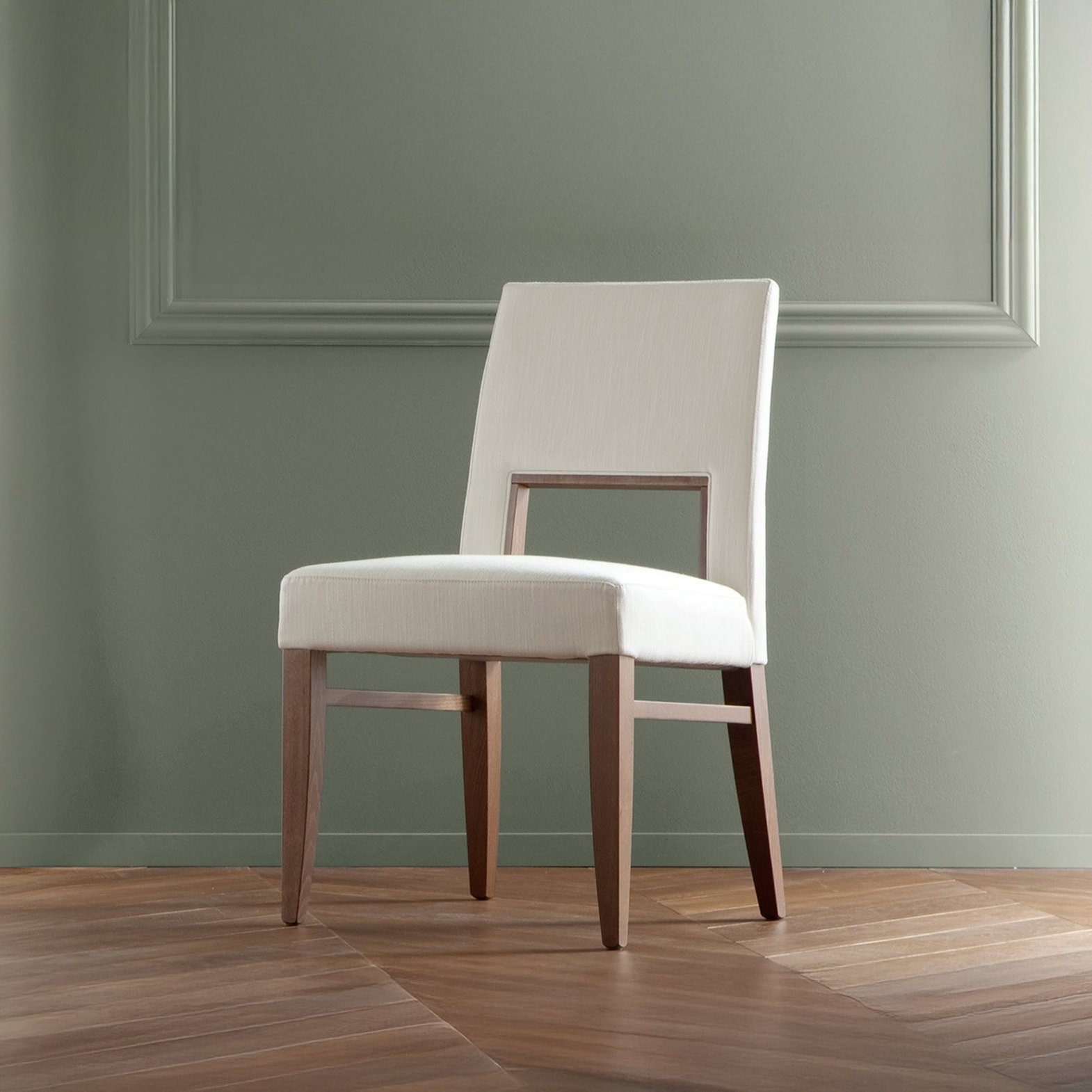 The Blues Dining Chair is a masterclass in refined contemporary design, blending strength, elegance, and thoughtful craftsmanship. Its solid beech wood frame is accentuated by clean architectural lines and a distinctive rectangular opening in the backrest—an elegant detail framed in wood that adds visual depth and character. Generous padding in both the seat and backrest ensures comfort through long meals and engaging conversation, while its sculptural silhouette makes it a focal point in any dining setting.