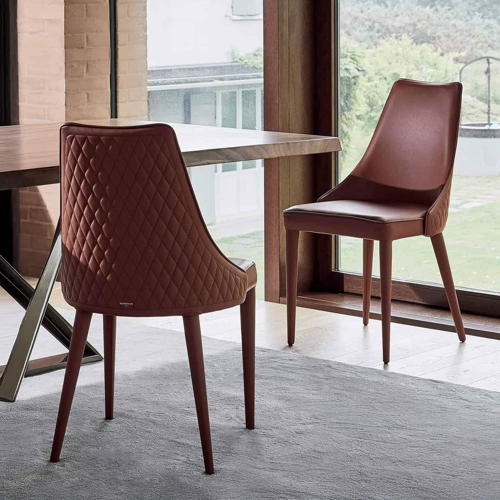 Clara is available with or without armrests and comes in an array of upholstery options, including fine leather, eco-leather, and premium fabric. Its structure can be finished in lacquered or solid wood tones, with customizable options for the legs to match or contrast the seat for a more striking look. Whether in a soft neutral or bold colorway, Clara elevates any dining space with its thoughtful proportions and refined materials.
