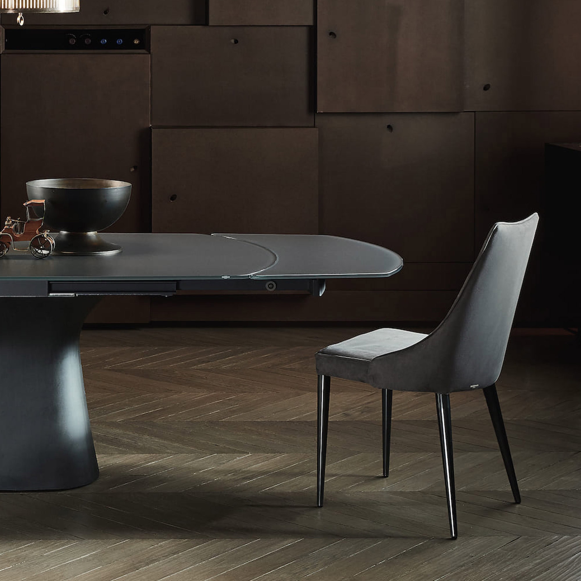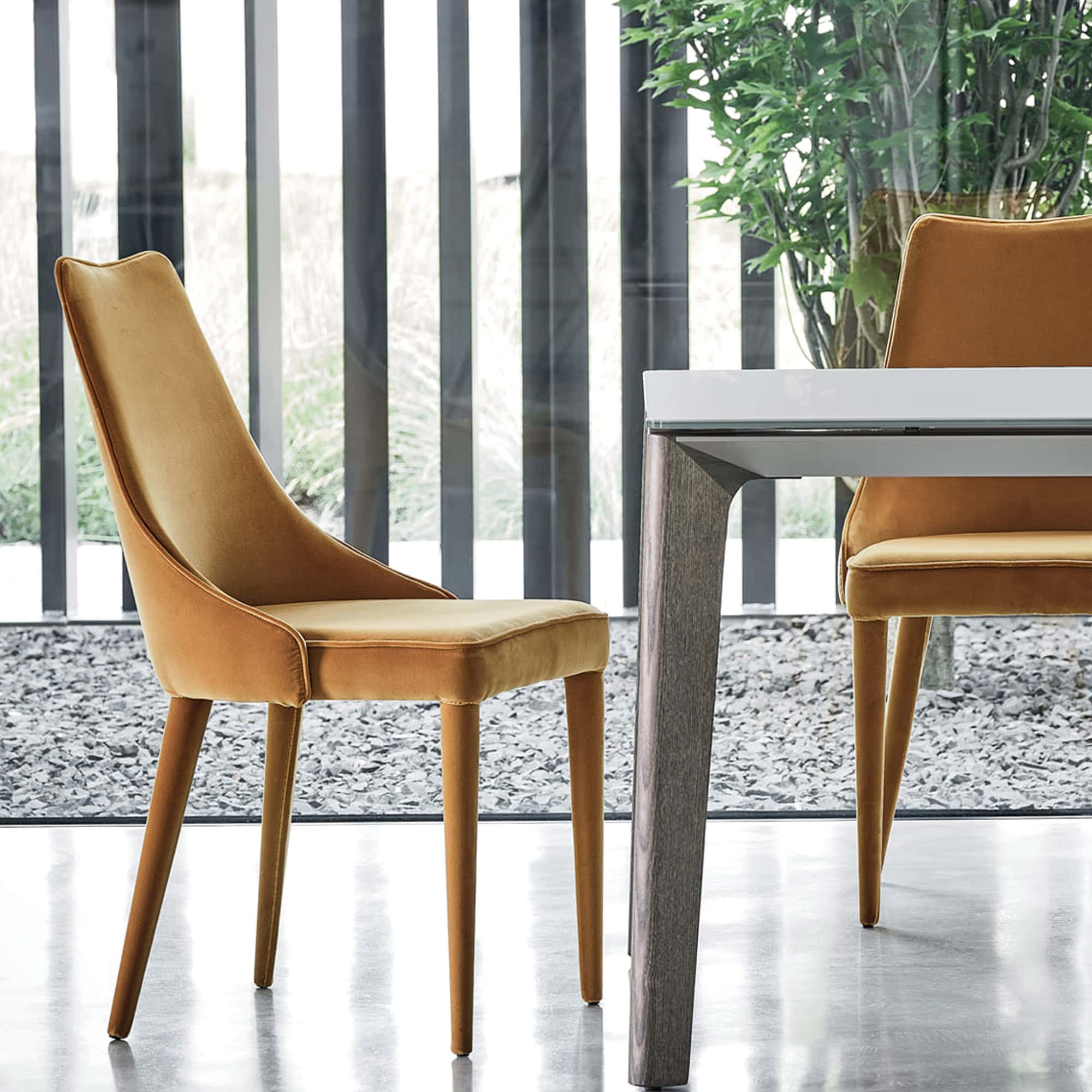 A graceful expression of comfort and refinement, the Clara Dining Chair from Bontempi blends tailored elegance with everyday versatility. Designed with a gently curved backrest and plushly padded seat, Clara offers a supportive yet relaxed sit—perfect for long meals or extended conversations. Its clean, fluid lines pair easily with contemporary and transitional interiors, making it a timeless addition to both dining rooms and hospitality settings.