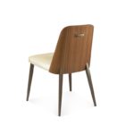 Designed by Carl Muller here in the United States the contemporary Coco Dining Chair looks like fun - short and sassy it will look good at almost any modern dining table. We love the walnut back on the chair but you can choose from a variety of wood finishes to match your decor. The splayed and tapered steel legs look playful and fun and of course can be customized with any of the powder coat finishes. The addition of a champagne colored handle on the back is part design, part function. Best news yet - there is a companion bar and counter height stool so your decorating will be a piece of cake. Warranted to meet or exceed industry standards.