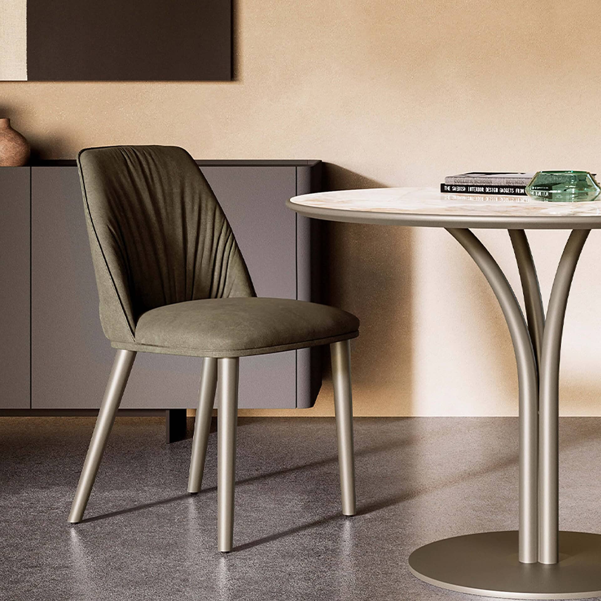 The simplicity of the Diva Chair is truly something to say wow about. With its gorgeously crafted profile and stunning upholstery, this dining room chair is the perfect addition to your space. The use of metal for the legs adds a refined touch of elegance and softens out the overall shape of this fluid structure. This chair is available in leather, eco-leather or fabric. The cover is not removable.