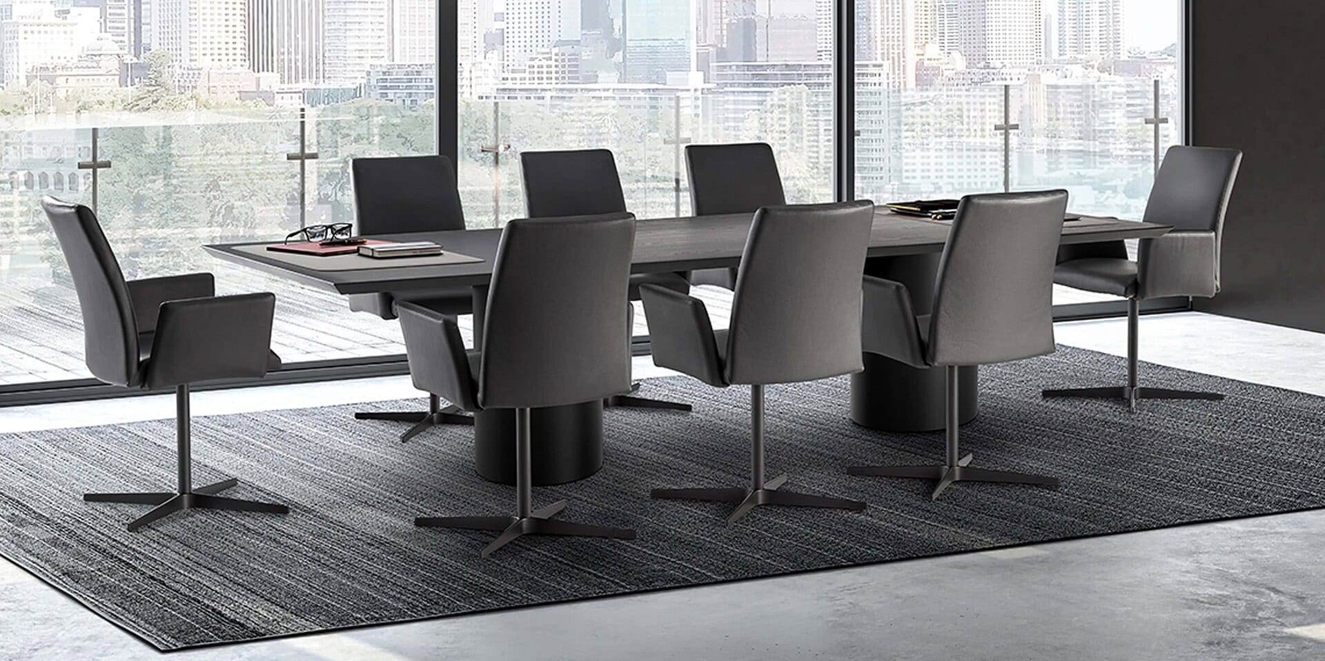 In a contemporary office, whether it be at home or in a business setting, the Ekta Four Ways Chair adds a sleek, polished look.