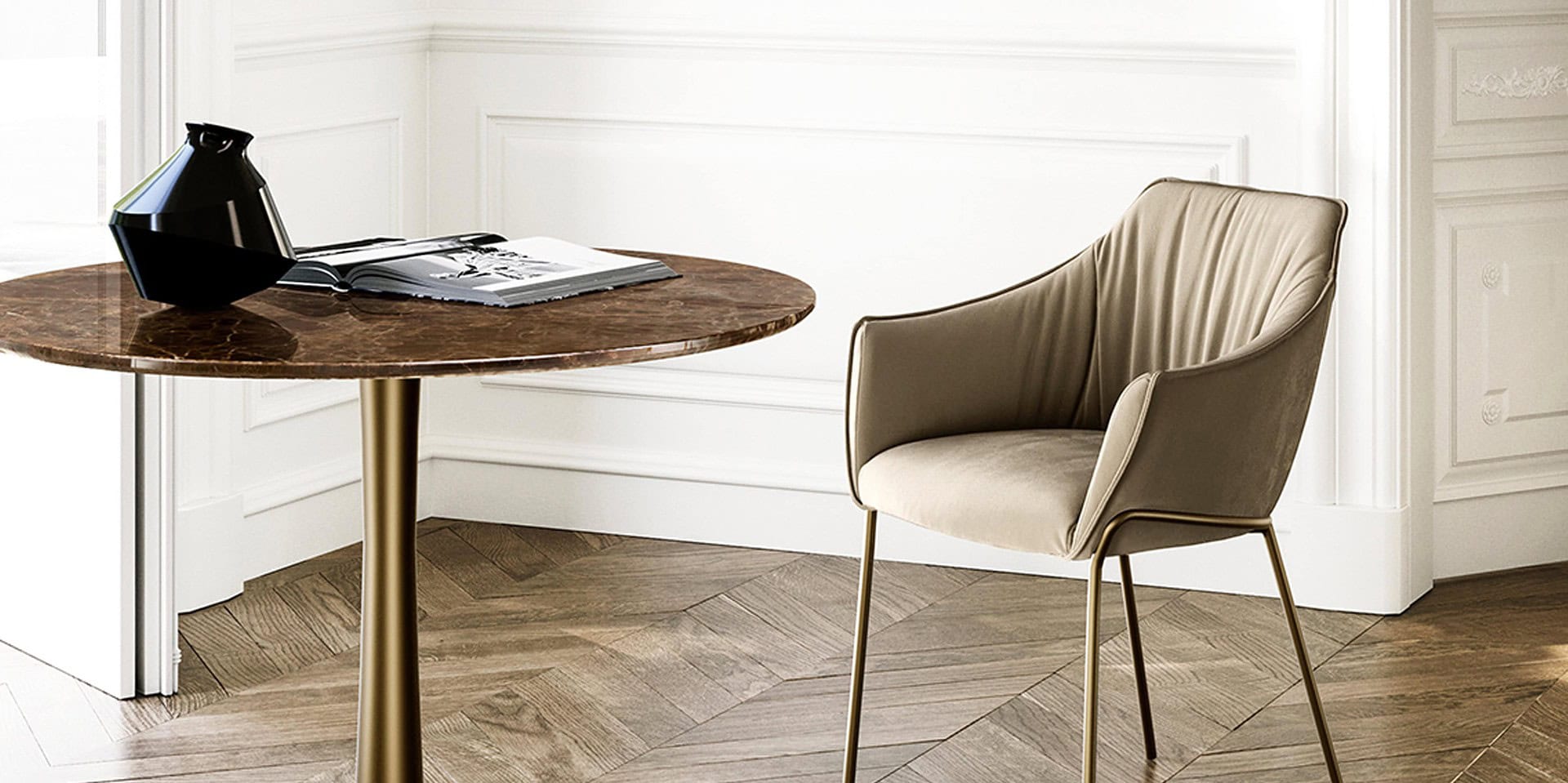 Introducing the Era Metal Legs Chair; a luxurious, modern, upholstered armchair. Every component of the seat exhibits a sartorial touch, including the rich movement of wrinkles that adorn the cover in the inner part of the back. With metal legs, it is soft and slender. Although intended for homes, they are also ideal for offices. Offered in fabric, eco-leather, or leather. The cover cannot be removed.
