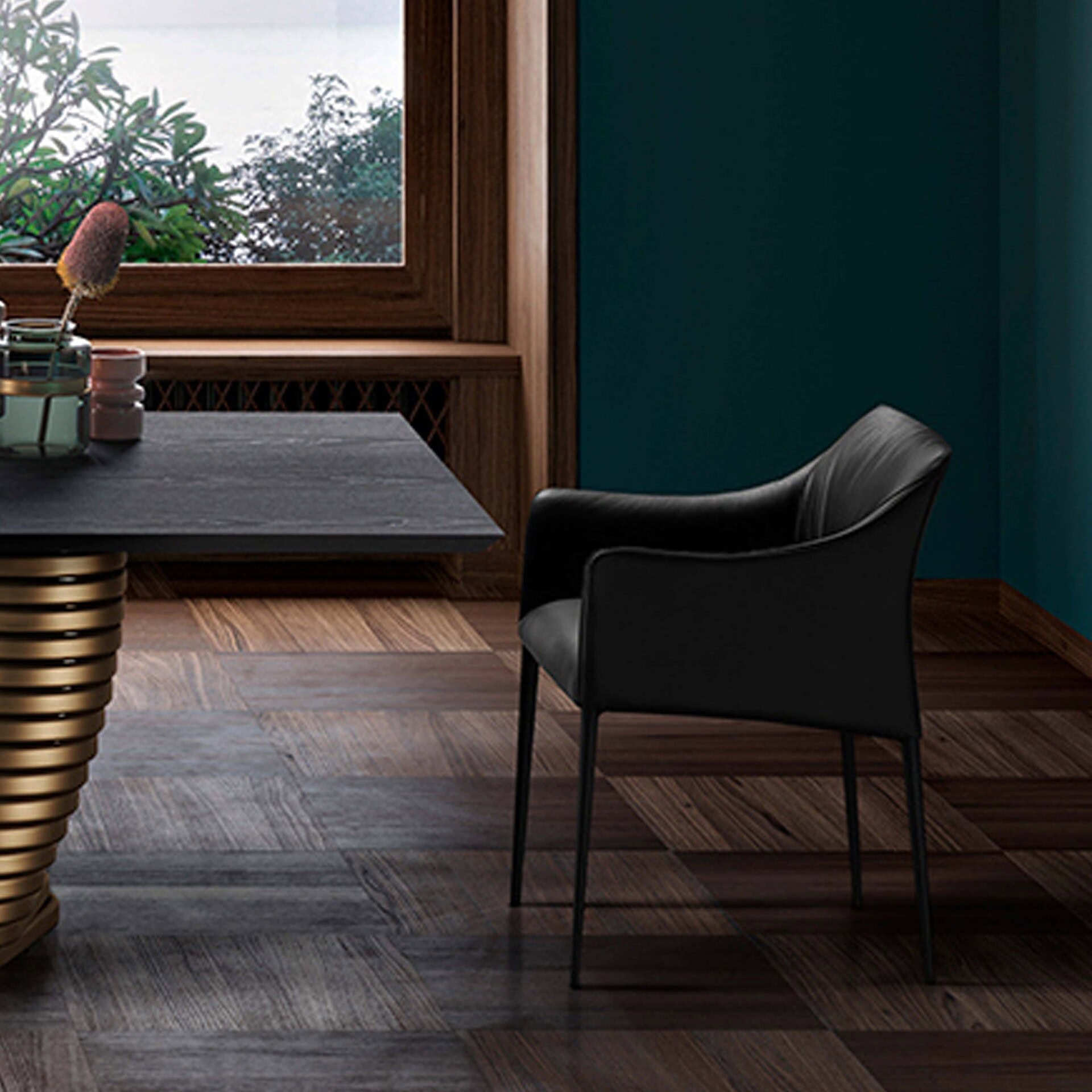 The formal and lightweight Isidora Chair is a supremely comfortable option that combines formality with necessity and eliminates the need for anything extra. This elegant armchair has a metal frame and can be customized with leather, eco-leather, or fabric. The cover cannot be removed.