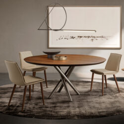 Introducing the Lara Chair with ash stained solid wooden legs; a luxurious, modern, upholstered armchair. Every component of the seat exhibits a sartorial touch, including the rich movement of wrinkles that adorn the cover in the inner part of the back. This chair is offered in fabric, eco-leather, or leather. The cover cannot be removed.