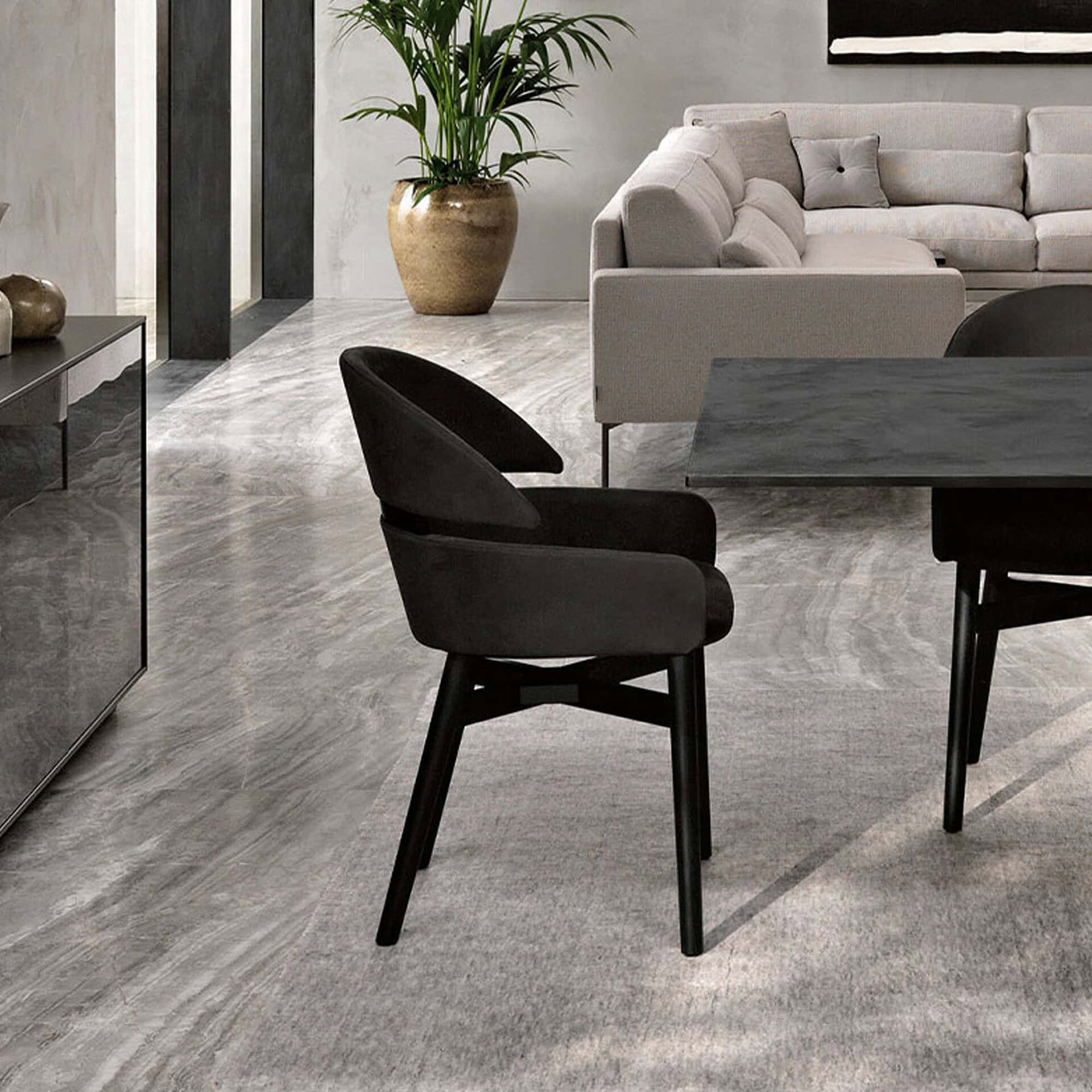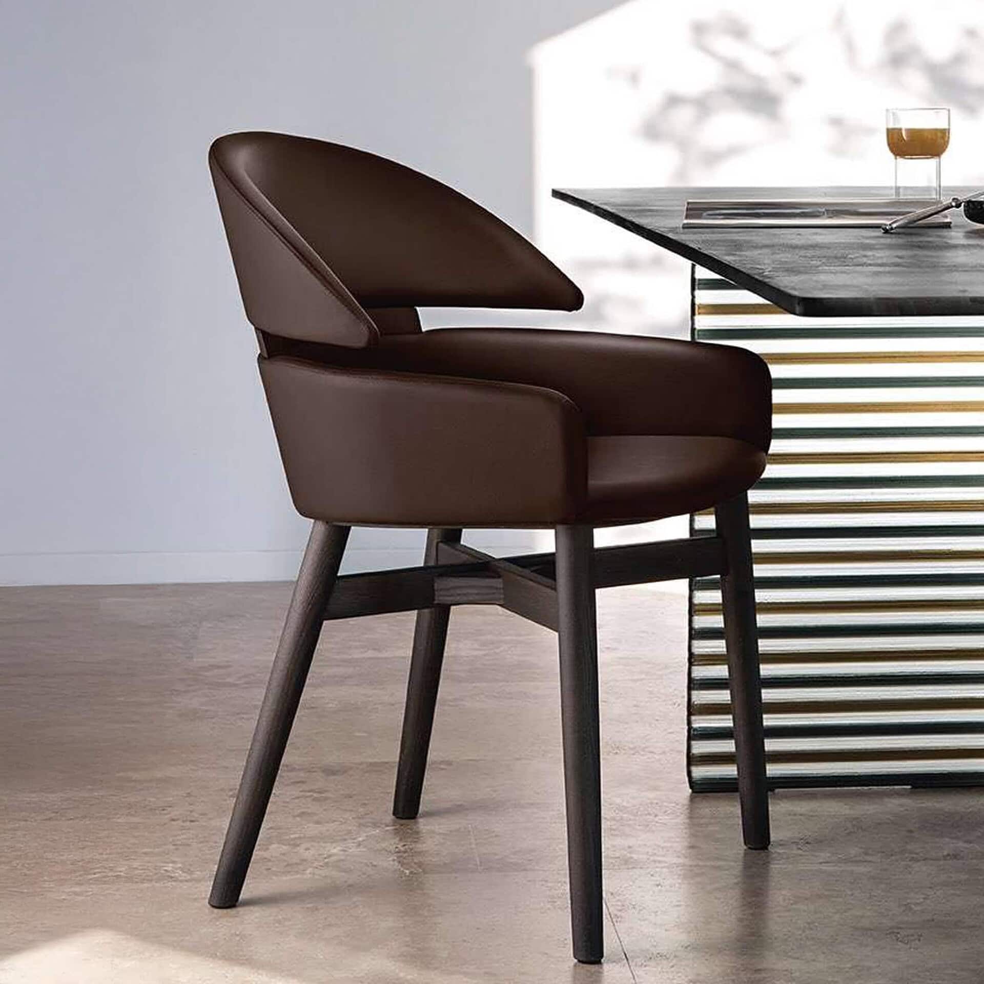 The Lloyd Dining Chair by FIAM Italia blends timeless craftsmanship with contemporary style, making it a refined addition to any dining space. Designed by Studio Klass, its elegant lines and slightly tapered wooden frame deliver a look of understated luxury. The plush seat and curved backrest, upholstered in premium One leather or soft Nubuck, invite comfort while maintaining a sleek silhouette that fits beautifully in both casual and formal settings.