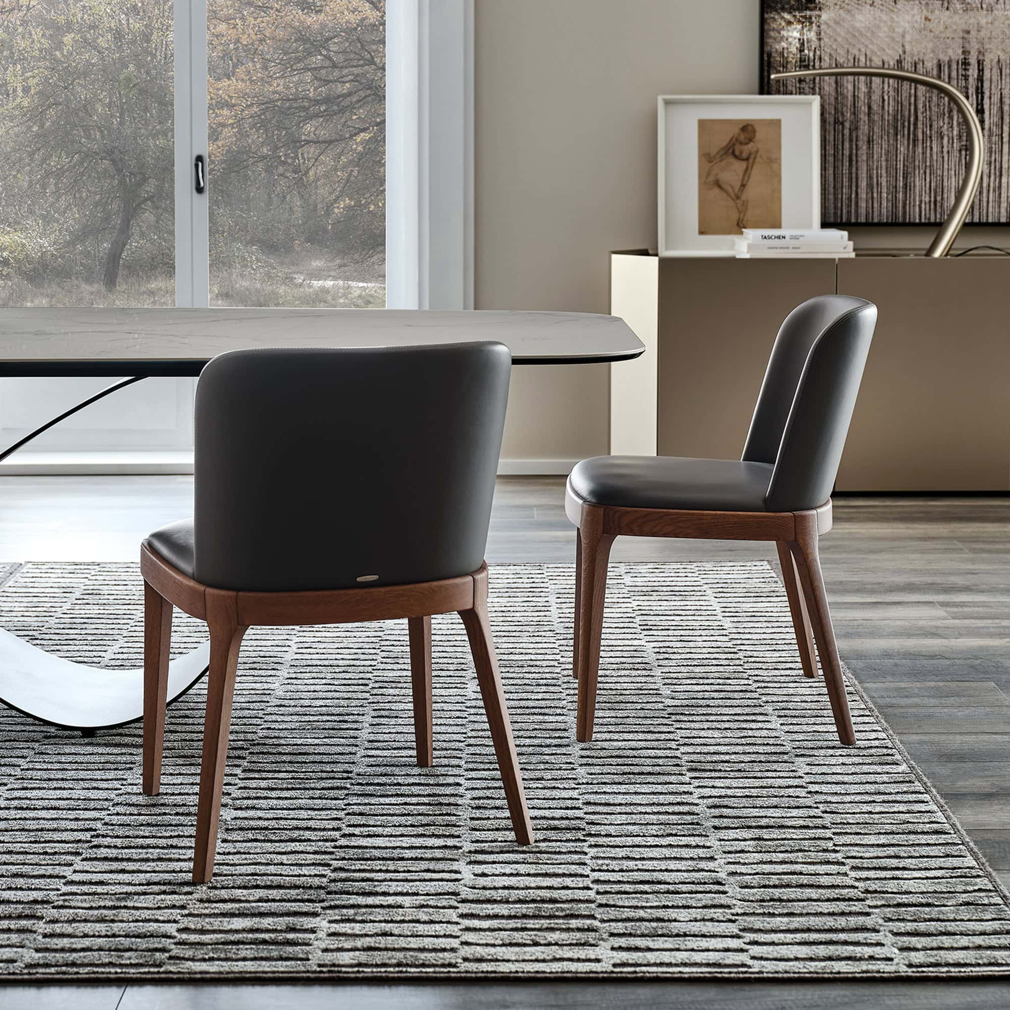 Expertly crafted and fully upholstered, the Magda Upholstered Dining Chair is available in a wide range of luxurious coverings including soft leather, glove leather, micro nubuck, synthetic leather, and fabric. The rich wood finishes — from Canaletto walnut to open-pore black — emphasize Cattelan Italia’s signature attention to natural texture and tone. With its graceful proportions and enduring construction, Magda embodies the perfect blend of beauty and function.