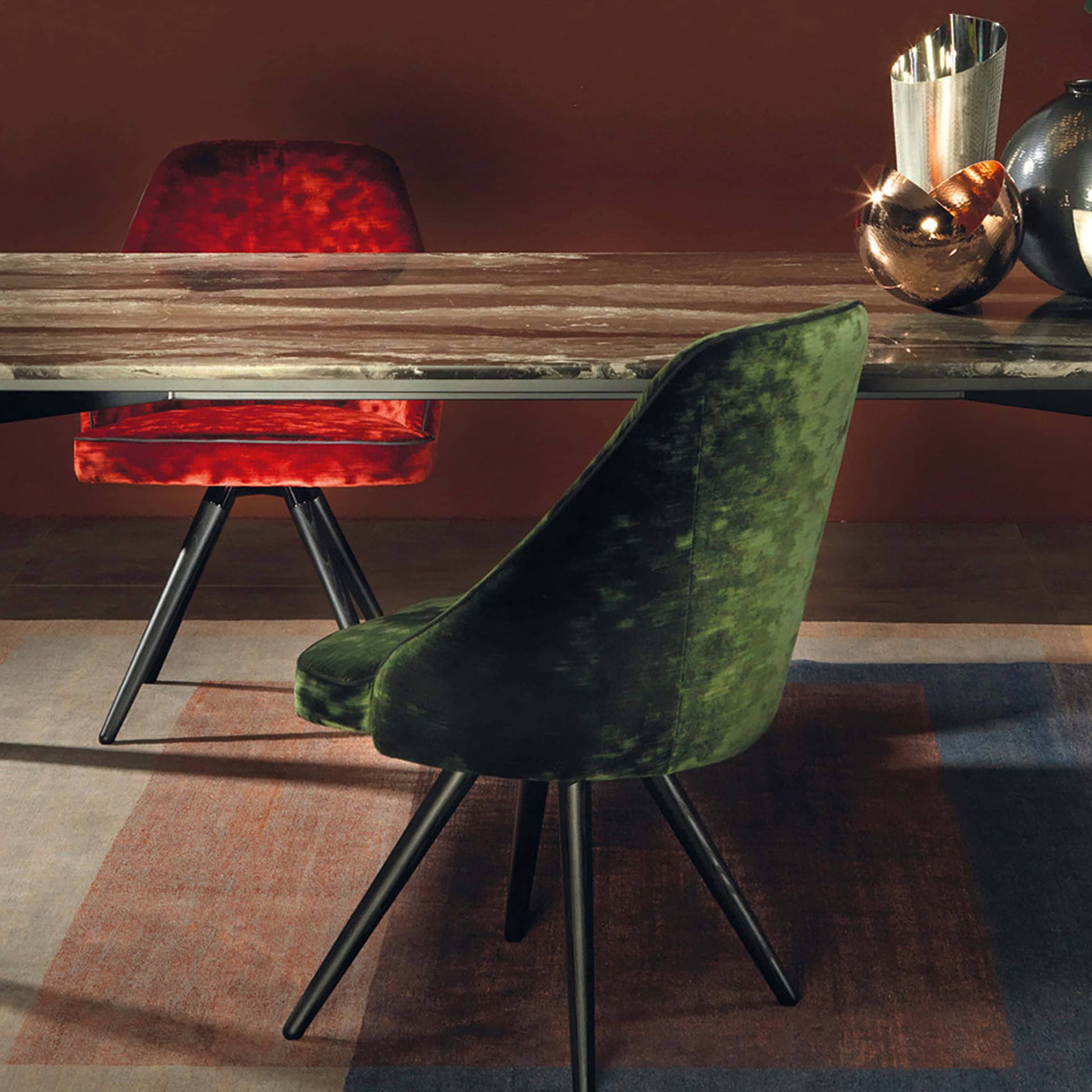 The Neil Chair has a high closed backrest for perfect back support. The small details on the lower back are the ones that make it less formal. Stylishly versatile, this chair is exceptional within the dining room space and can have two different bases.