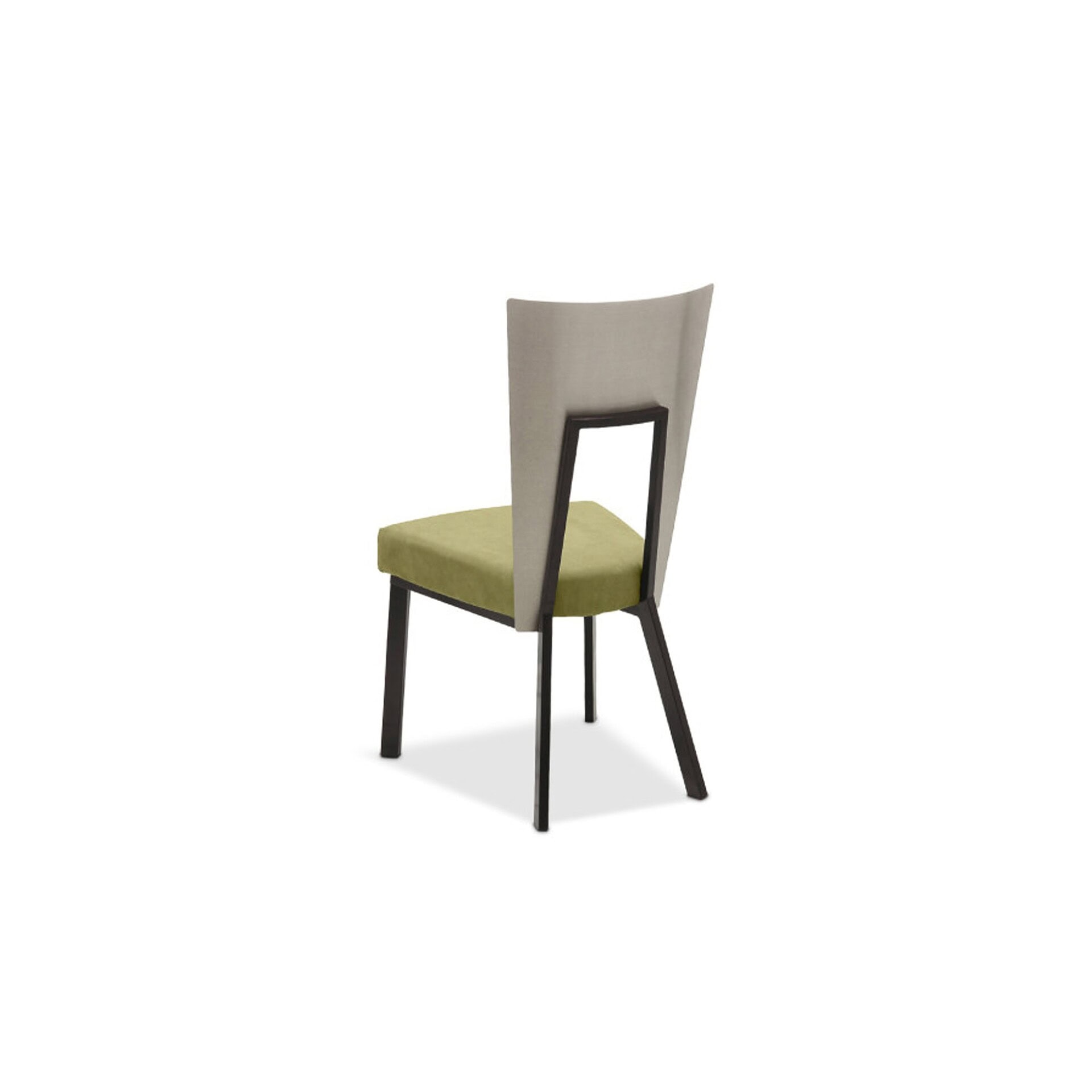 Champagne-plated contoured back (non-customizable) with a metal frame available in various powder-coated finishes. Upholstered seat offered in a wide selection of fabrics or leathers.