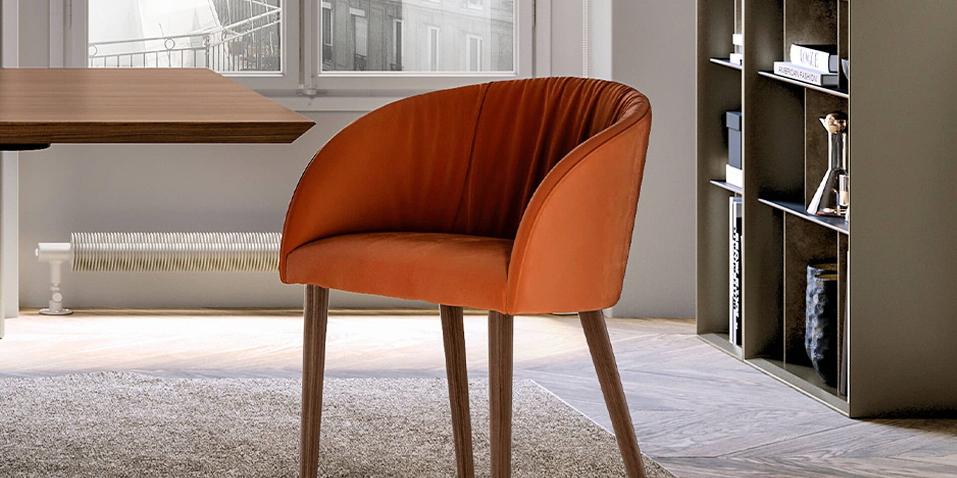 The Vulcano Wood Legs Chair is a striking design for a contemporary home. In your formal dining room or kitchen, make a fashionable statement.