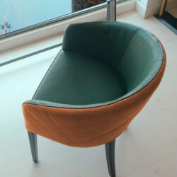 The enclosed cockpit seats of the Zoe Chair are made of elegant quilting on the shell. Suitable for combinations of different materials and colors. This chair is beautiful to situate within the dining room space, while providing a subdued hue with a hint of colour for extra jazz.