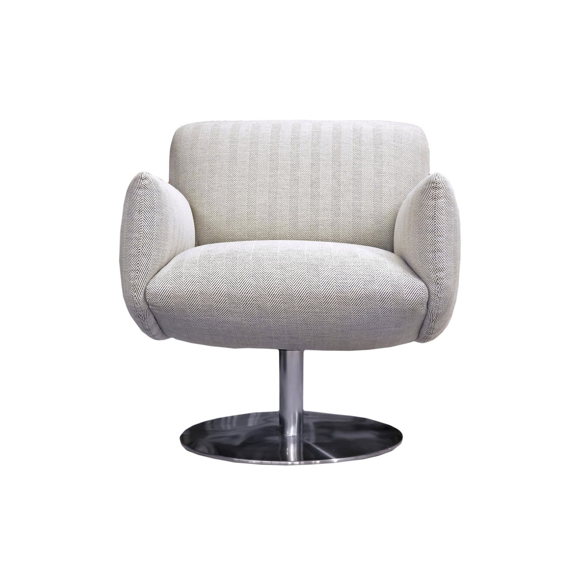 The Frances Swivel Chair is a plush, modern addition to any space, designed to captivate from every angle.