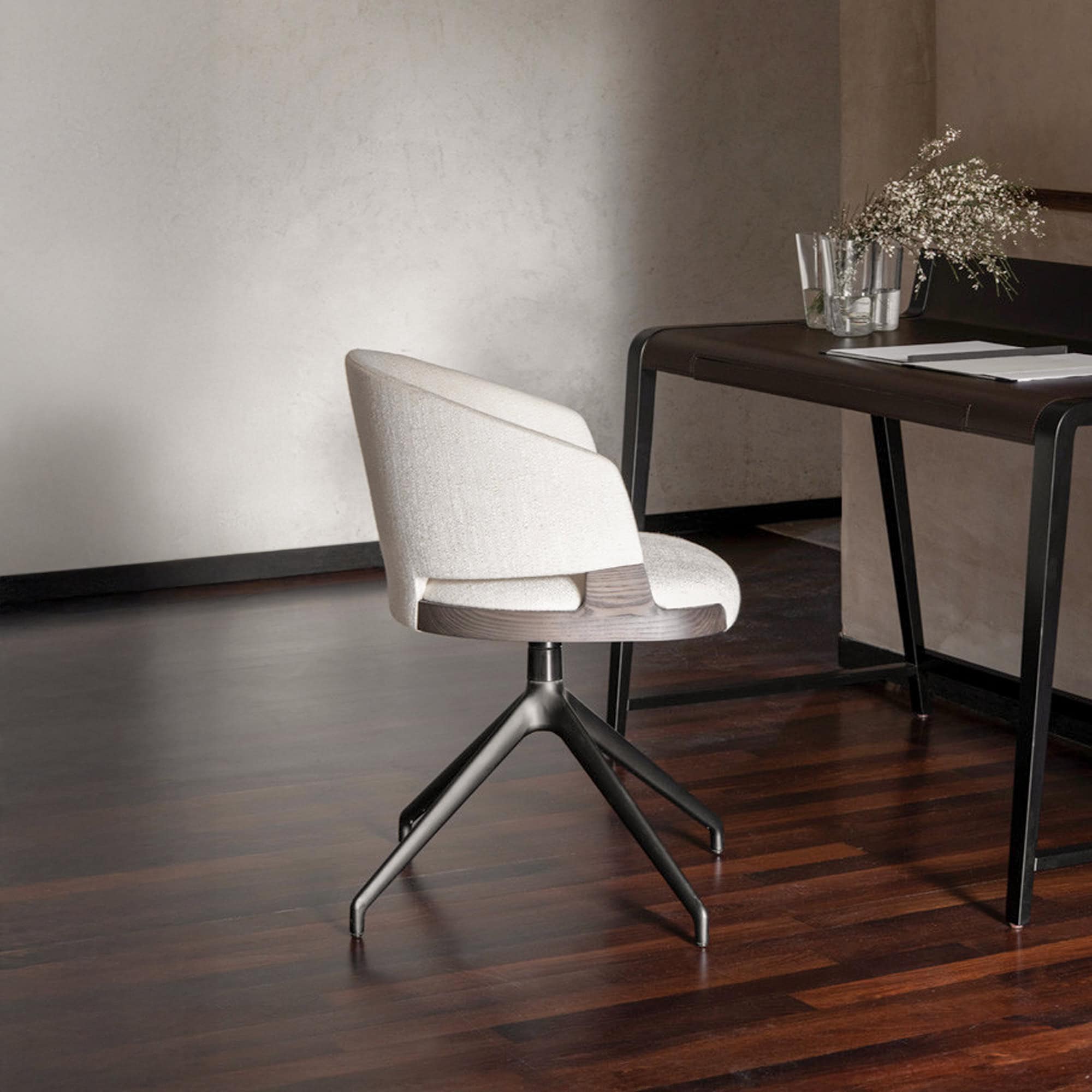 Inspired by the 50th anniversary of the moon landing, Italian designer Angelo Pinaffo created the Eclipse series. Eclipse chairs have a continuous line, curved like the elliptical orbits of the spherical planets. Their shape generates a clean and essential seat, which conveys lightness. Choose from a stackable, unique v-leg, a classic beech wood or light task swivel base. Available in 3 monochromatic or 3 colorful shades with or without an arm and arm tablet. V-leg chairs stack armless, with arms and with arm tablets. Add an optional upholstered seat.