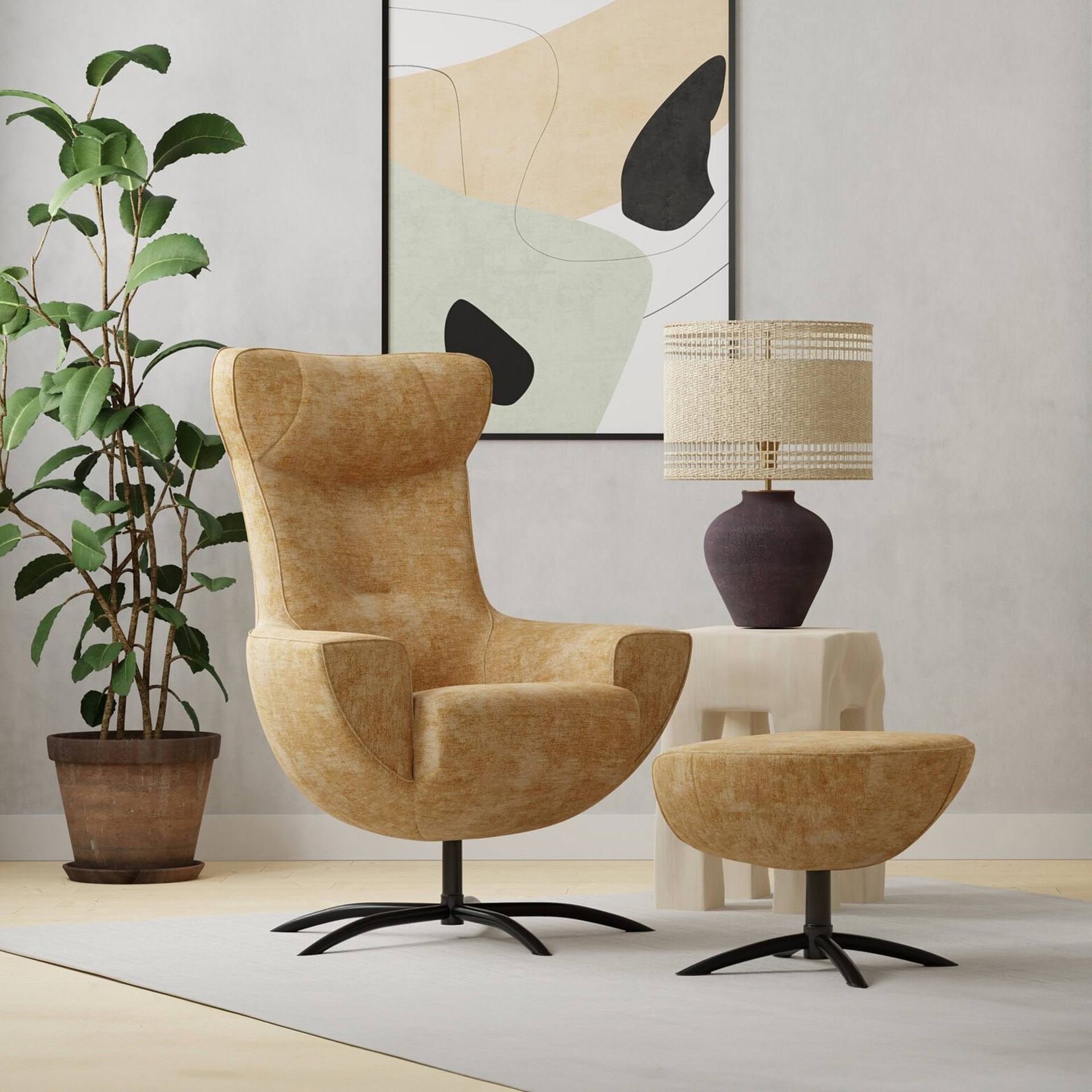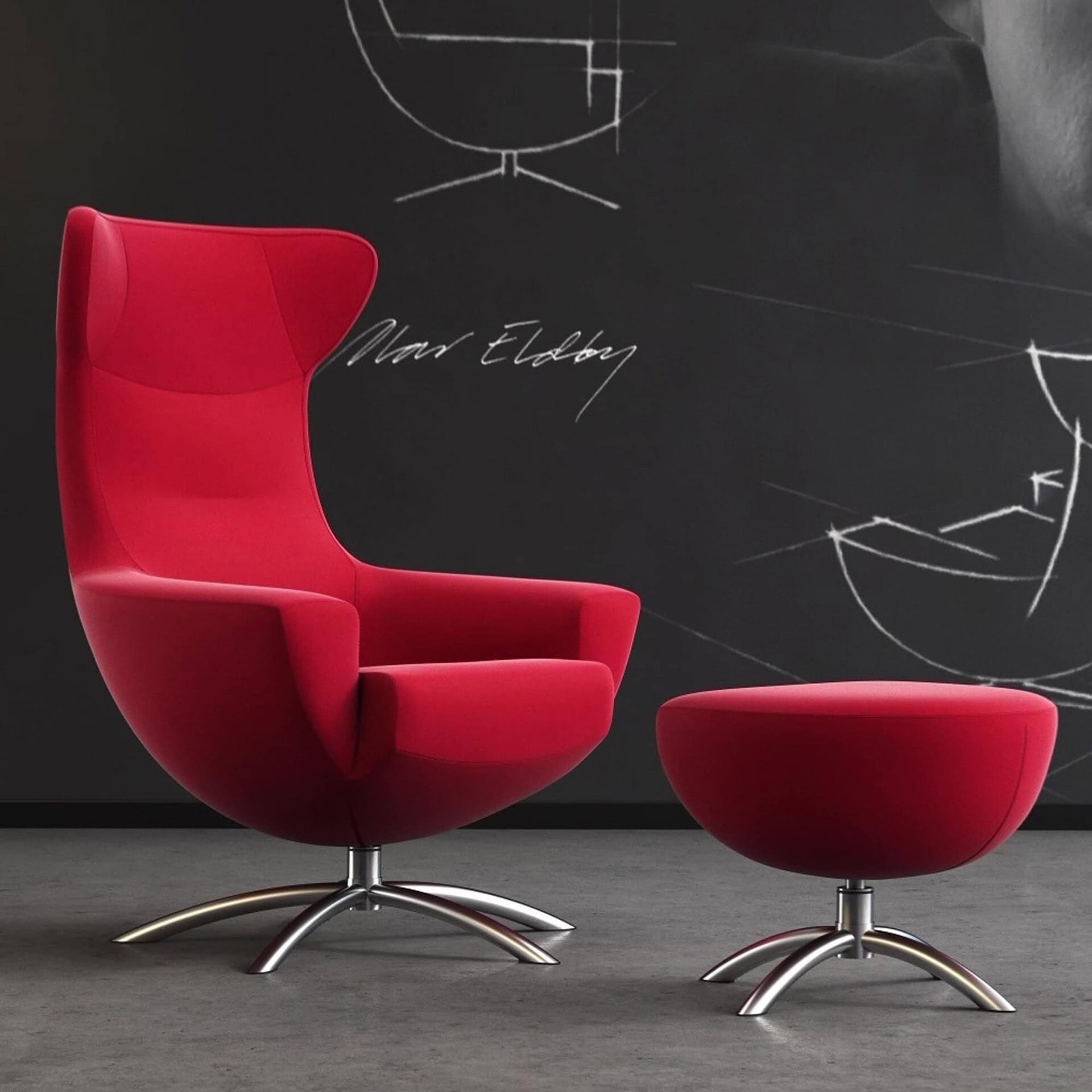 The Baloo Chair and Ottoman bring a playful touch of 1960s charm to contemporary spaces, combining organic shapes with Scandinavian design principles.
