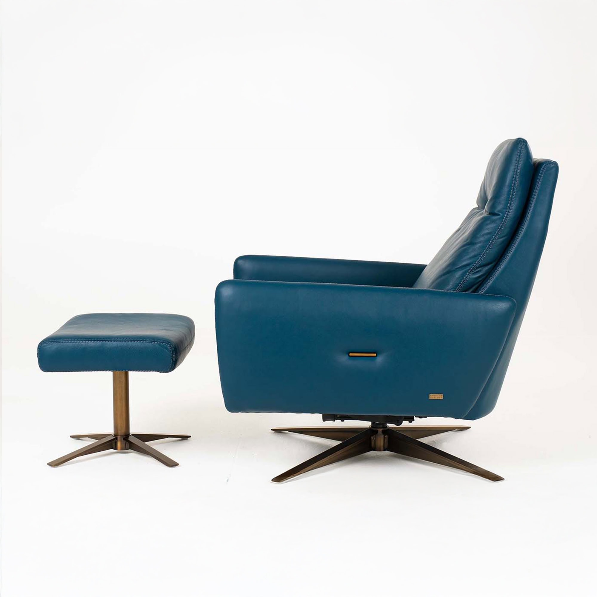 Every detail of the Denali Recliner is thoughtfully crafted—from the double-needle top-stitching to the tight seat cushion that maintains its structure and style over time. Customize the look with a choice of premium leather, fabric, Crypton®, Sunbrella®, or Ultrasuede® upholstery. The disc base is offered in Natural Walnut or Brushed Metal, while the four-star base comes in Antique Brass, Burnished Bronze, Natural Walnut, or Polished Nickel. Optional metal accents on the arms and back cushion add a refined finish. Pair with a matching ottoman for ultimate comfort.