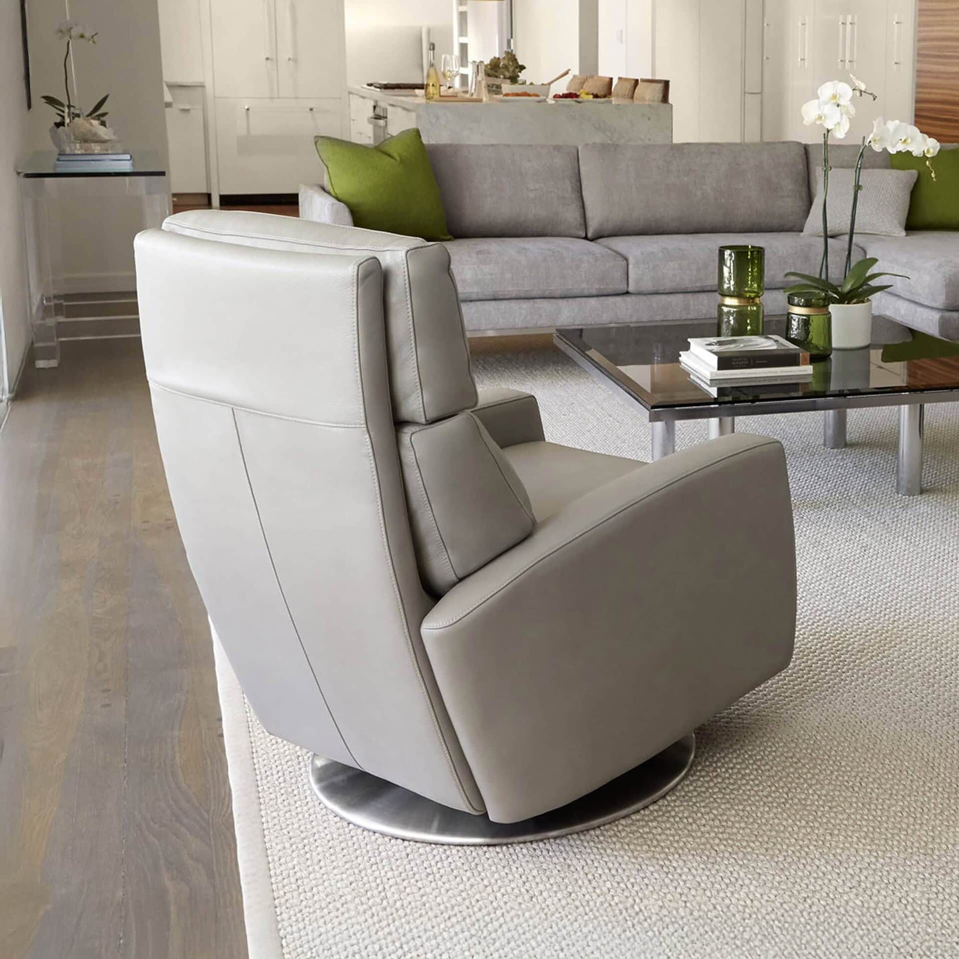 [vc_row][vc_column][vc_column_text css=""]Designed with American Leather’s proprietary Infinity System™, the Elliot delivers personalized comfort with adjustable support and optional motion features. Choose from a wide variety of upholstery options, including leather, fabric, Crypton®, Sunbrella®, and Ultrasuede®, to complement your home. The recliner is also available with several base styles: from sleek brushed stainless steel and polished nickel to warm natural walnut or rich ebony wood tones, allowing you to craft a look that suits your aesthetic.[/vc_column_text][/vc_column][/vc_row]