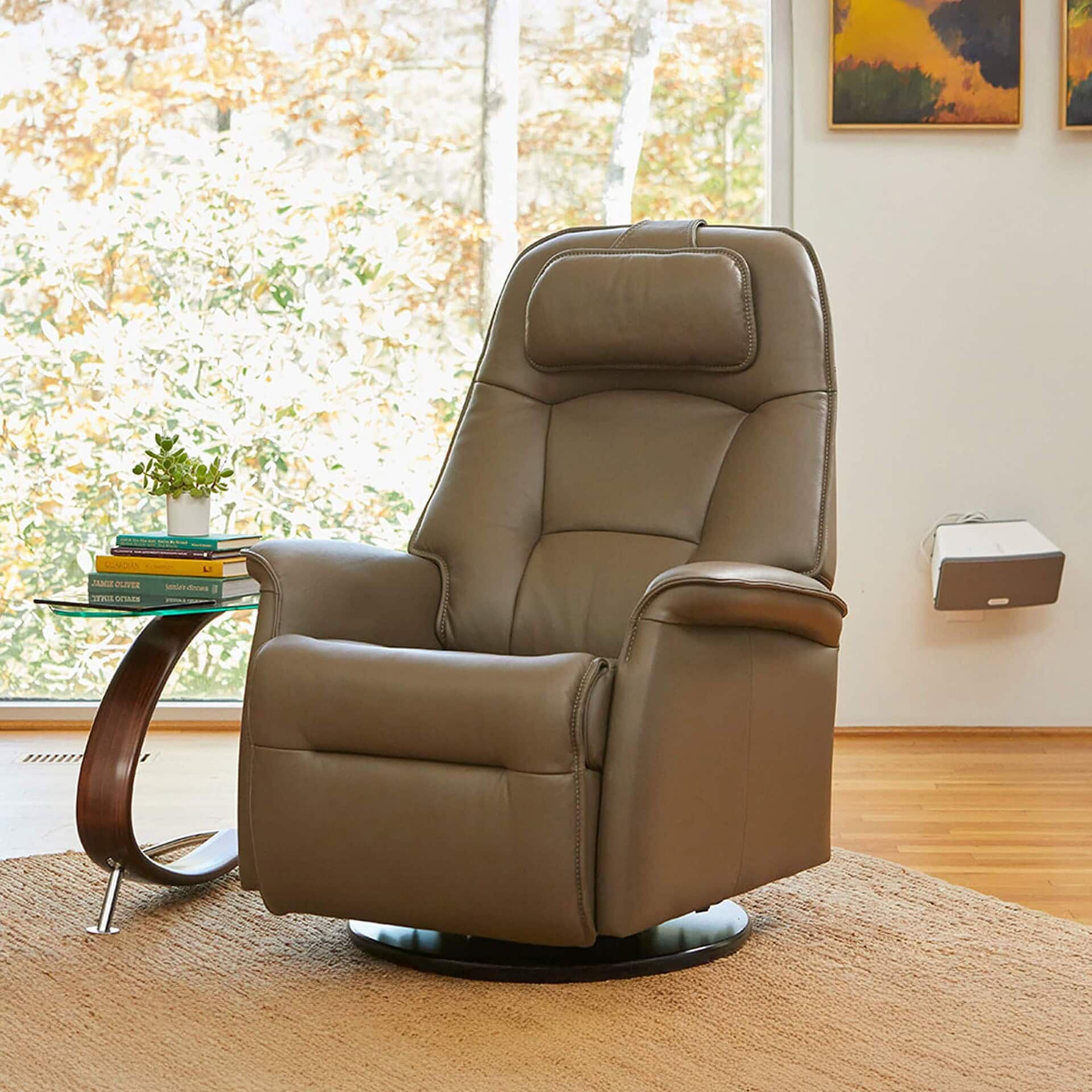 Designed for superior comfort and clean Scandinavian style, the Fjords Stockholm Recliner redefines what relaxation looks and feels like. With a motorized articulating headrest and adjustable pillow, it offers ergonomic lumbar support and a customized seating experience. The recliner’s integrated control panel includes a USB charging port, while the smooth swivel, glider, and rocking motions add dynamic functionality to any living space. Available in both manual and motorized versions, Stockholm seamlessly blends relaxation and innovation.