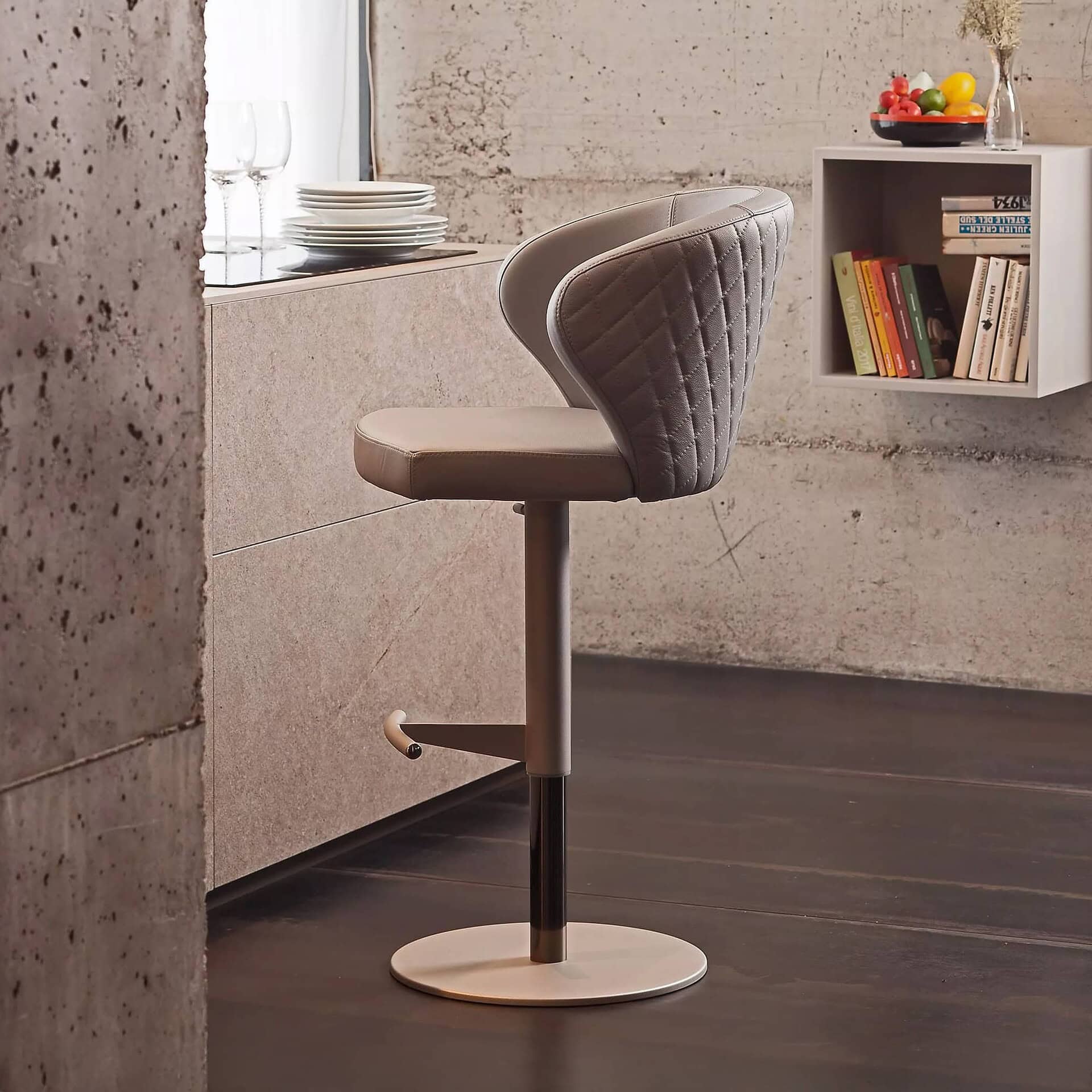 The Doris-P Bar Stool by Peressini is a modern take on timeless craftsmanship, striking a perfect balance between comfort and architectural flair. With either a fixed or height-adjustable metal frame, this stool supports a sculptural plywood seat and back—both CNC-machined for precision and generously padded with polyurethane foam. Its softly contoured silhouette welcomes you to sit, while the option for a quilted outer-back detailing adds a touch of tailored elegance. Whether tucked under a kitchen island or arranged around a bar, Doris-P creates a refined focal point in any contemporary setting.