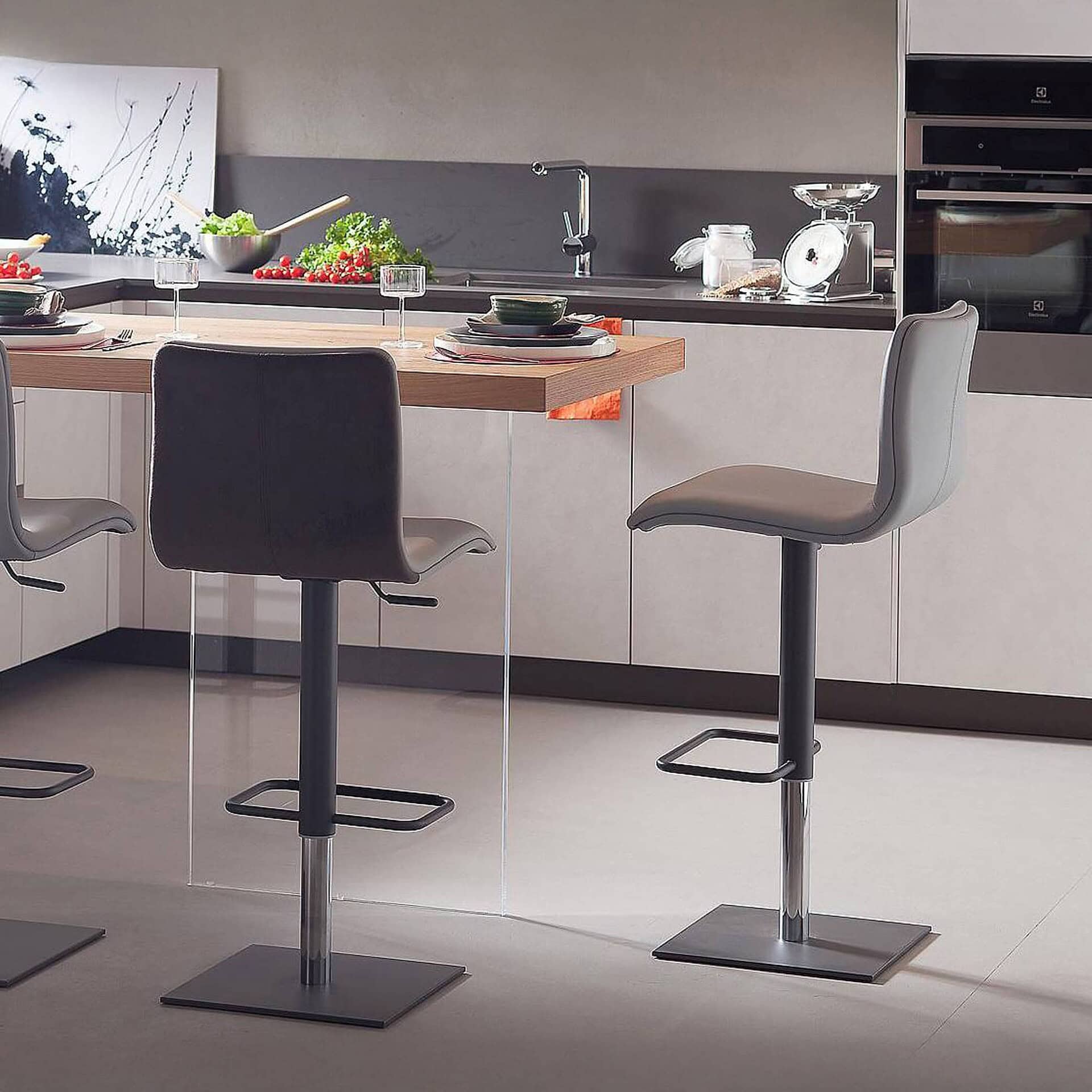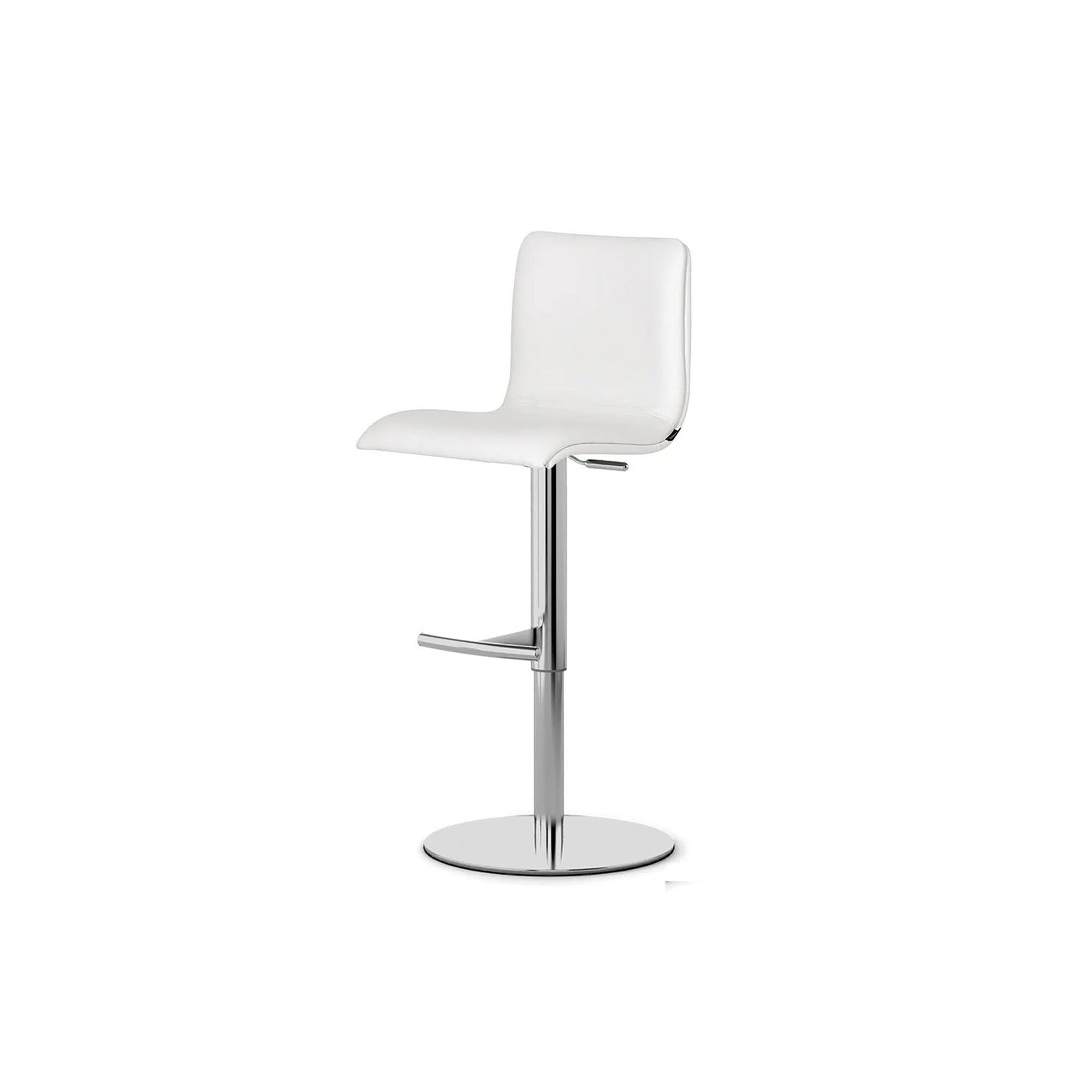 The Rio Bar Stool by Peressini pairs refined simplicity with functional versatility, offering a sleek solution for contemporary kitchens and breakfast bars. With its adjustable height and smooth swivel motion, this thoughtfully designed stool brings effortless comfort to any seating arrangement. A gently contoured plywood shell supports the body, while plush polyurethane foam delivers lasting comfort, all wrapped in a refined leatherette upholstery that blends easily with modern interiors.