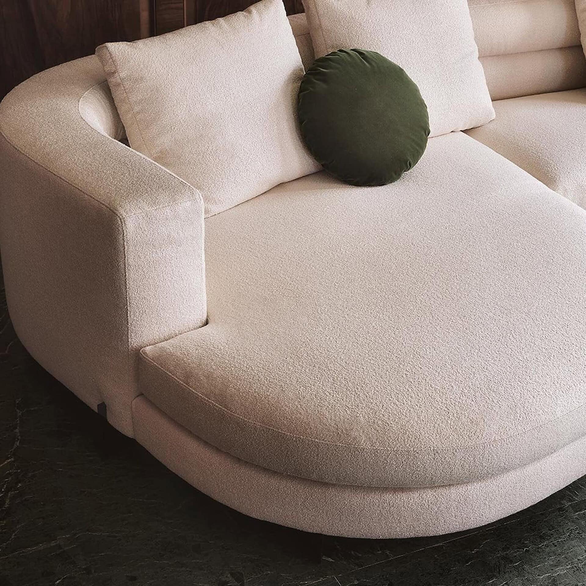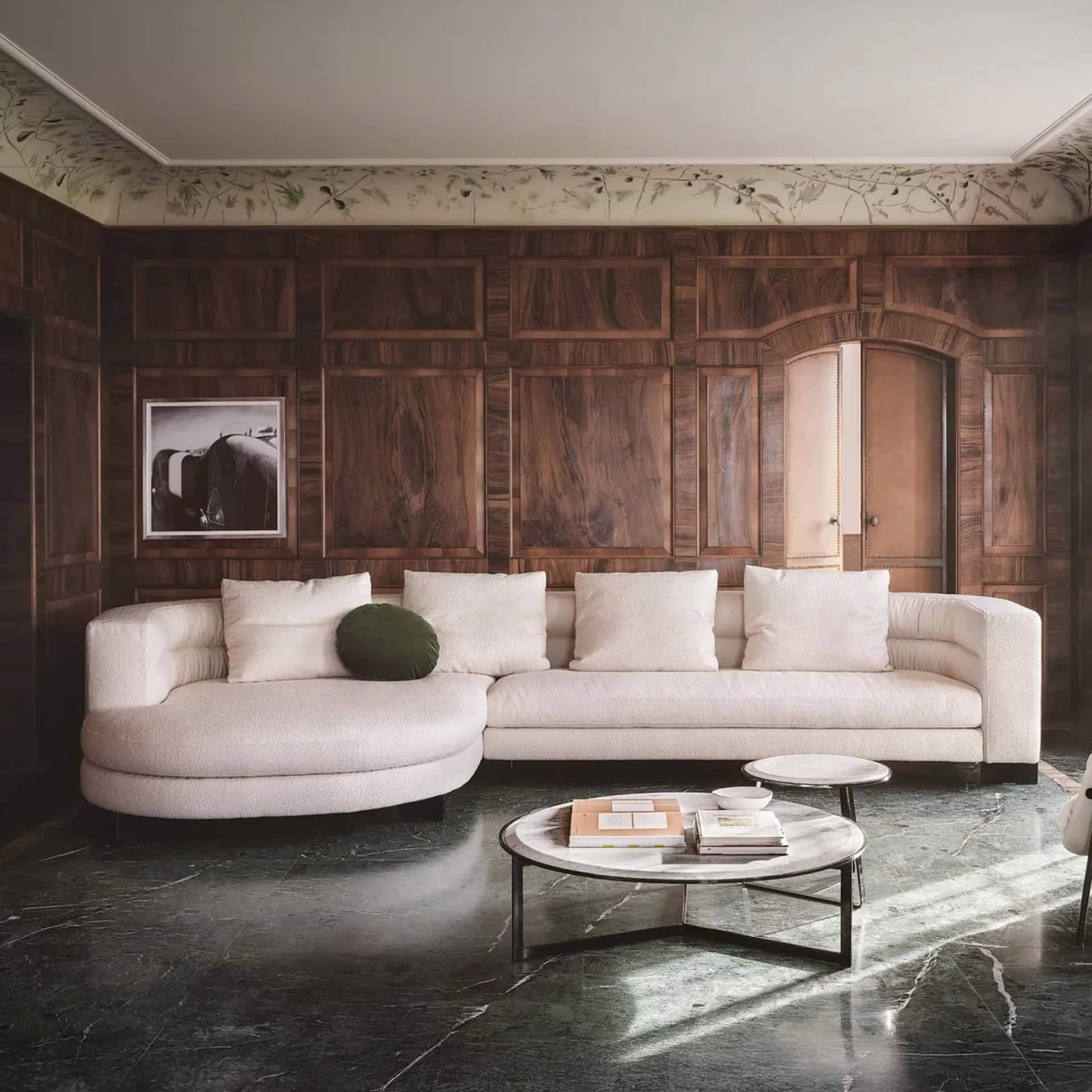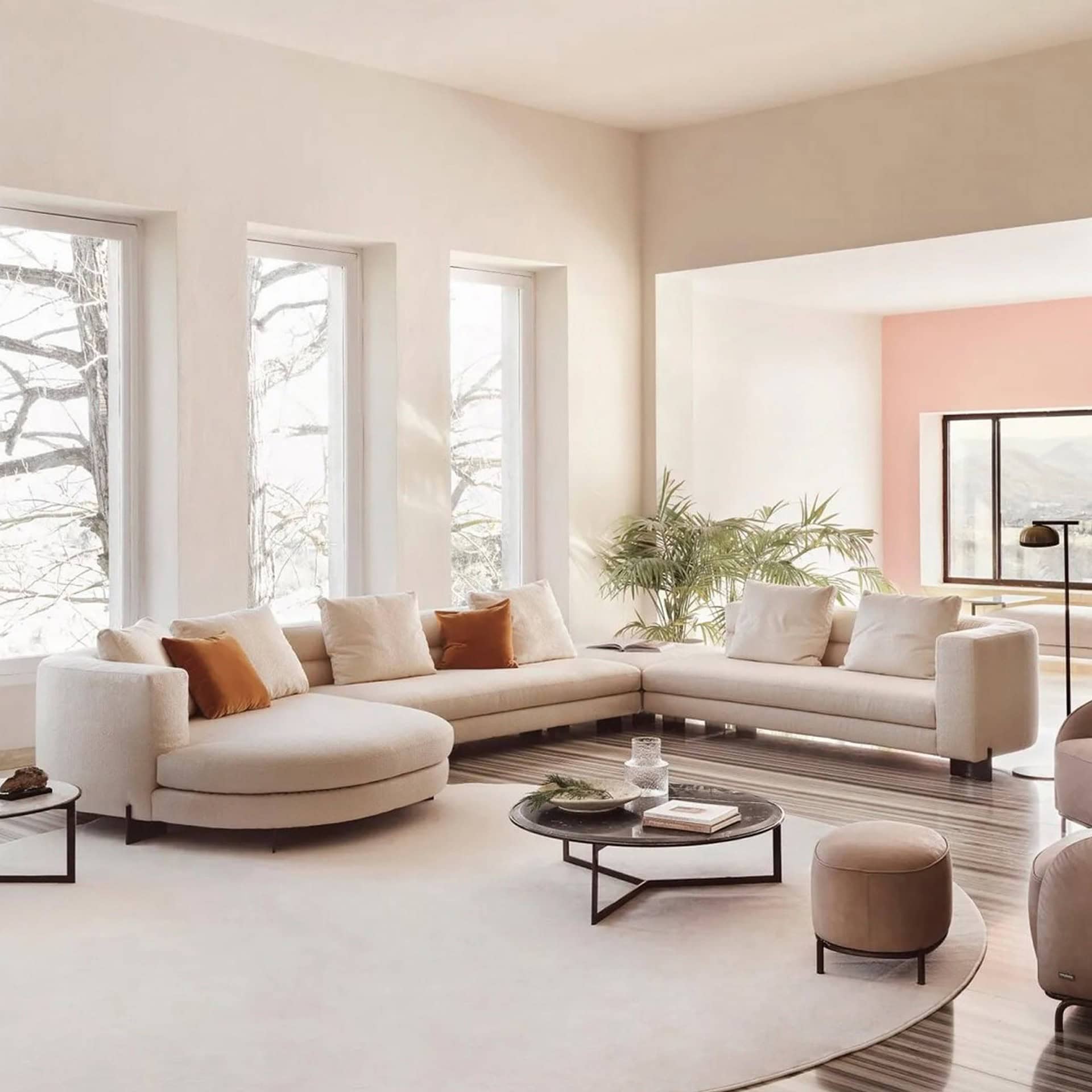 The Aura Sofa by Nicoline is a striking combination of refined geometry and plush comfort, offering a contemporary take on modular luxury. Its low profile and crisp angles are softened by generously padded, extra-soft fiber back cushions, providing a balance of architectural elegance and casual ease. Designed for modern, open-concept spaces, Aura's modular configurations and finished sides allow it to stand freely or integrate seamlessly into custom arrangements. With optional White Carrara, Emperador, or Black Marquinia marble shelf elements, Aura becomes a sophisticated centerpiece as much as a place to unwind.