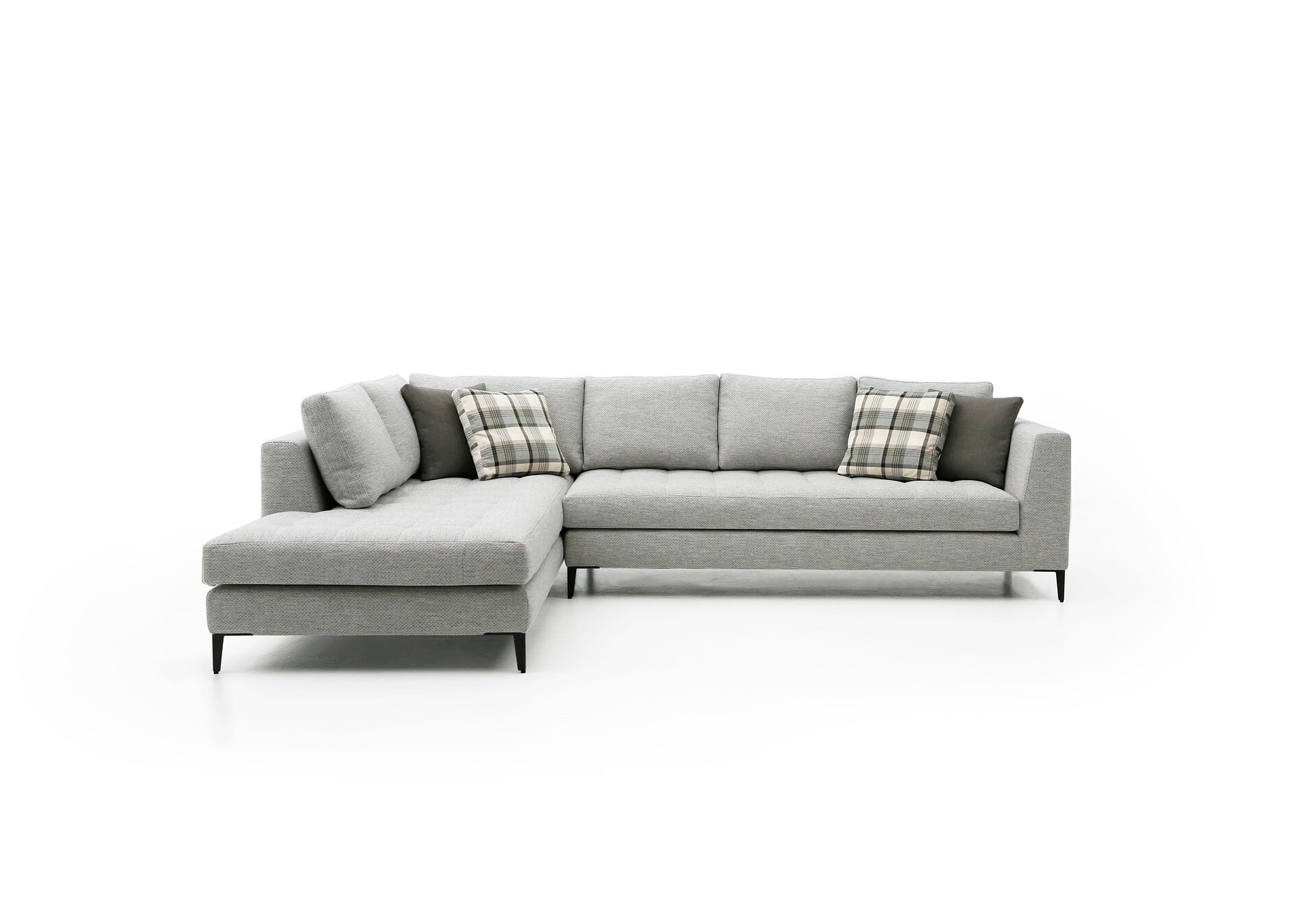 The L-shaped Avery fits beautifully into almost any room. The combination of a pared back form with the callback to traditional quilting and tufting make this a beautiful transitional sectional that transcends any particular time period. Features powder coated metal legs and 50% natural goose feather and down filling. Warranted to meet or exceed industry standards.