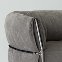 Discover the Belt Sofa: a masterpiece where metallic strength meets chromed elegance. Soft cushions in light hues promise comfort, encircled by a stylish leather belt—more than an adornment, it commands the space with a chic, metropolitan flair.