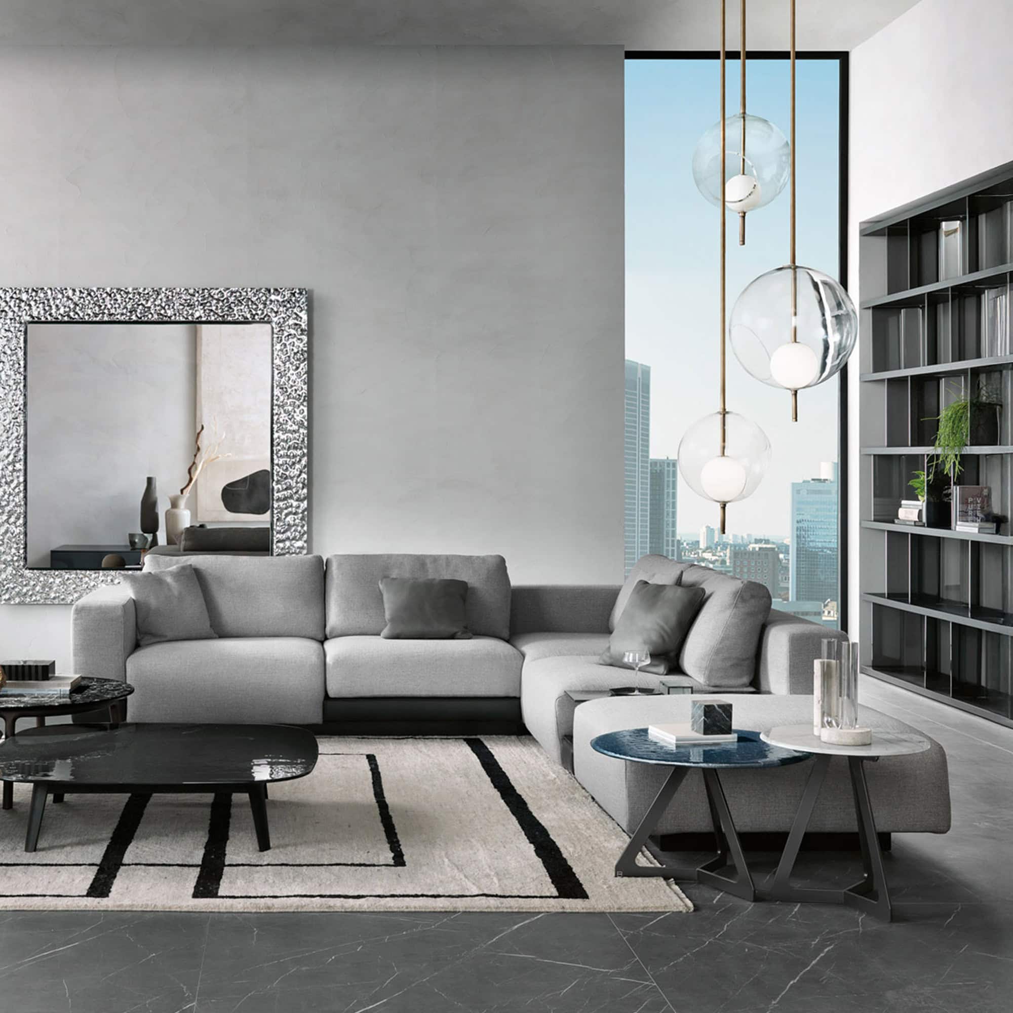 Ideal for refined interiors, Carrara features a mixed-material construction that speaks to FIAM’s artisanal quality. The internal wood frame is sprung with elastic straps for long-lasting flexibility, and the down-filled back cushions ensure a plush lounge experience. Both the seat and back cushions, along with the frame, are removable in fabric versions for added practicality. The wide selection of upholstery options, including textured fabrics and premium leathers, allows for personalization in both color and tactile appeal.