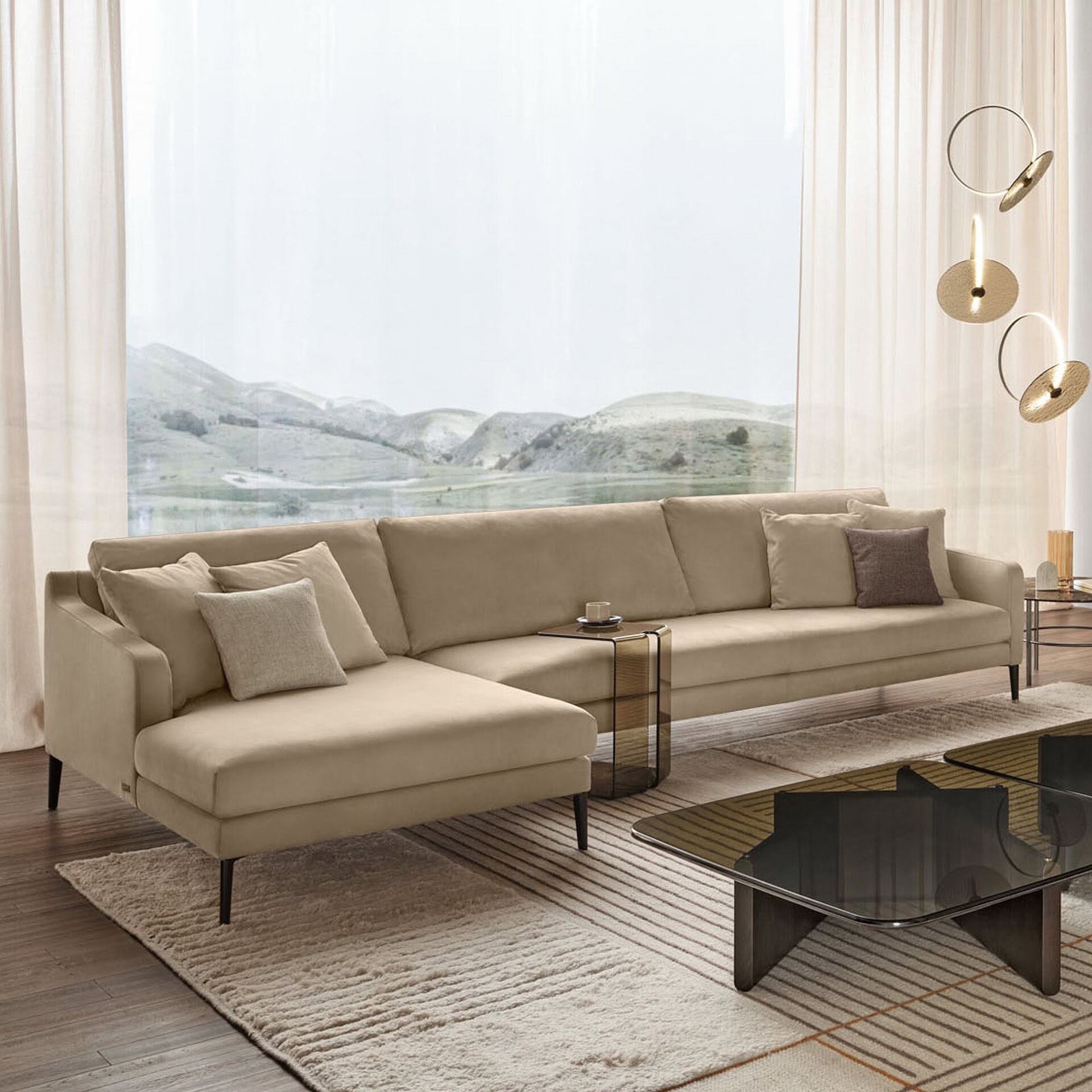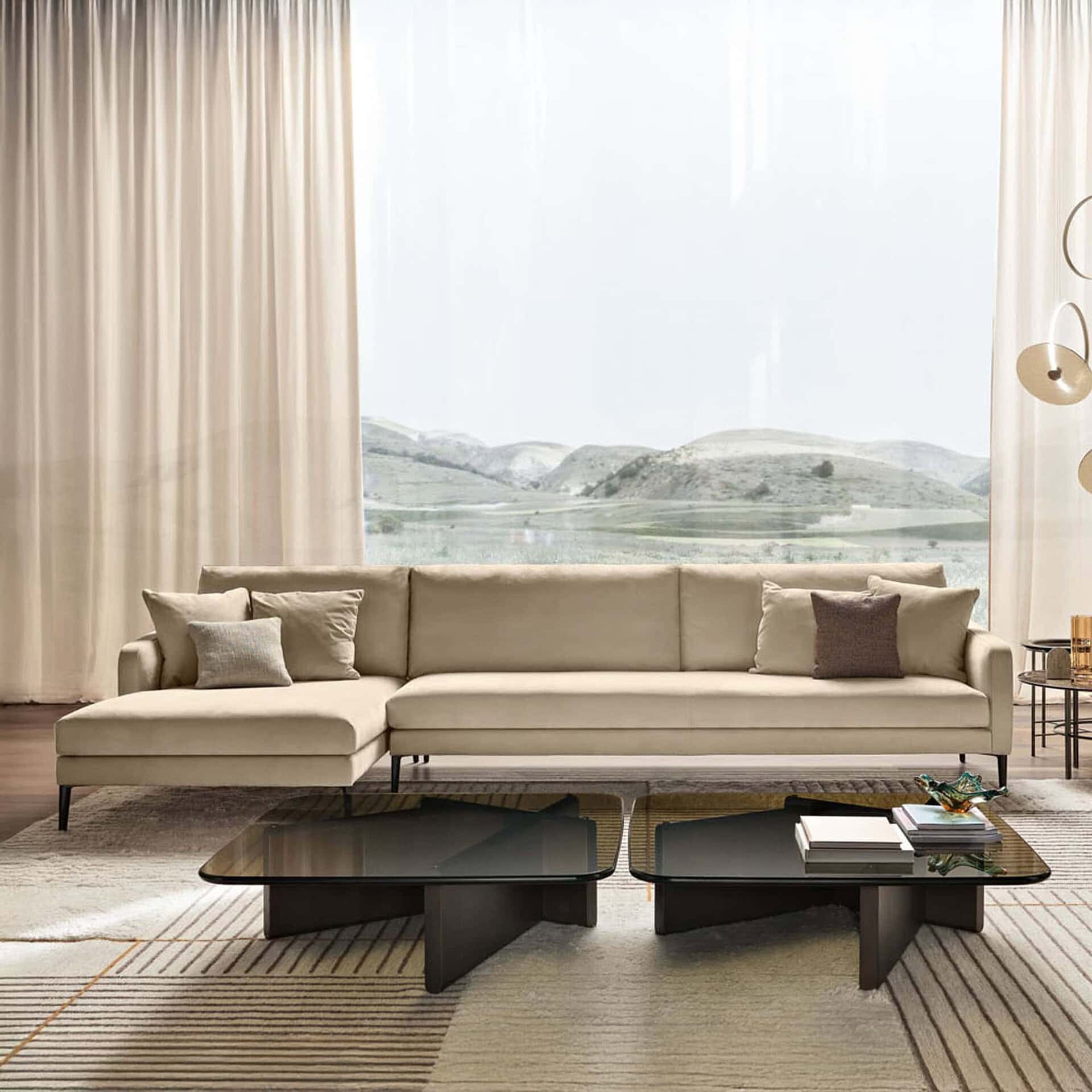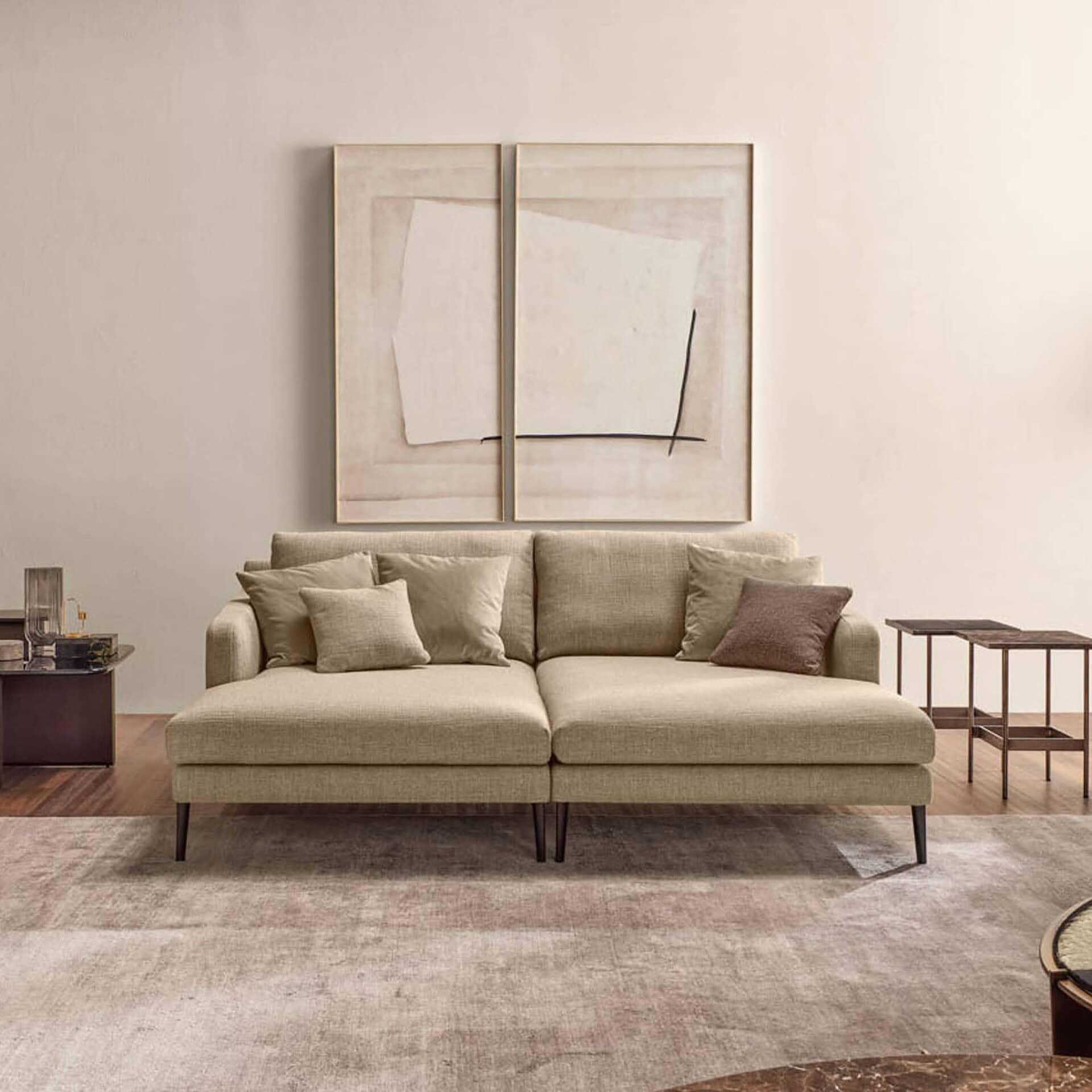 Sculptural yet deeply inviting, the Condense Sofa by This Weber for FIAM Italia blends tailored elegance with sink-in comfort. Its modular design allows for endless configurations—from compact two-seaters to expansive corner layouts—making it ideal for contemporary living spaces that demand both form and flexibility. With its generous proportions and minimalist lines, Condense offers an architectural presence while inviting you to relax into its cloud-like cushions. Its glossy black die-cast aluminum feet provide a bold contrast and elevate the overall silhouette with a hint of refinement.