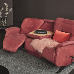 The elegant sofa not only impresses with its high-quality design: the patented Relax function ensures that this loveseat is ideal for quiet moments in your living room. On this sofa, you can sit back and relax, read and even fall asleep. The modern backrest design impresses with a foldable backrest, while the head adjustment is equipped with a comfortable mechanism. This model is equipped with a metal slide. The trapezoidal model offers extra comfort - it has a foldable central stand that instantly converts into a tabletop.
