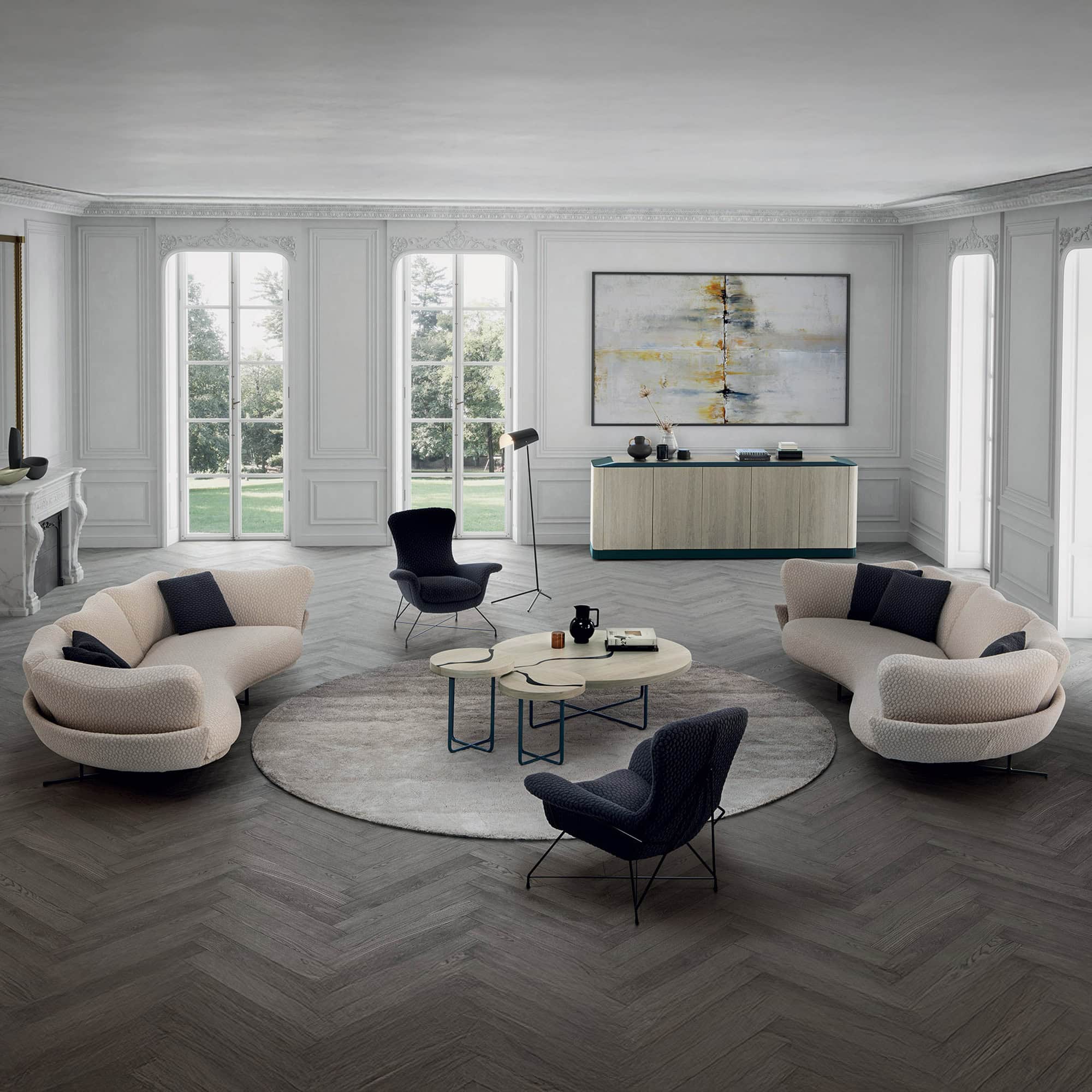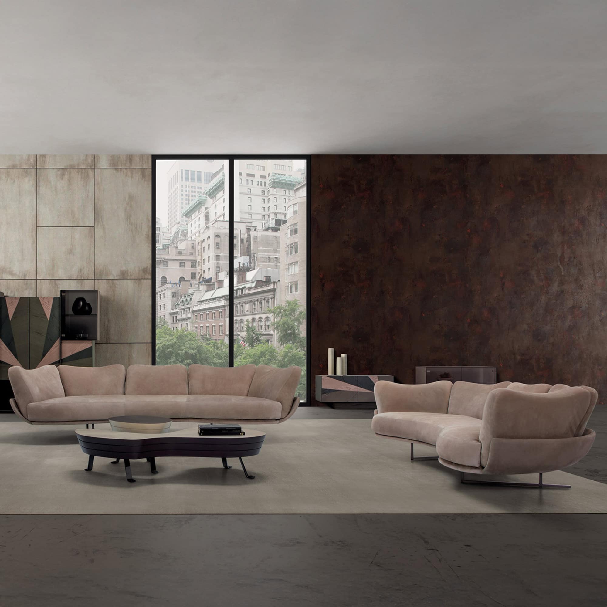 Built with meticulous Italian craftsmanship, the Freespirit Curvo features a sturdy internal frame padded with high-density polyurethane foam and wrapped in luxurious fabric or leather upholstery. The black nickel legs lend a contemporary edge and slightly elevate the profile for a light, floating appearance. Available in a wide range of modular configurations and fabric choices, the collection allows for customization to suit both compact and expansive interiors.
