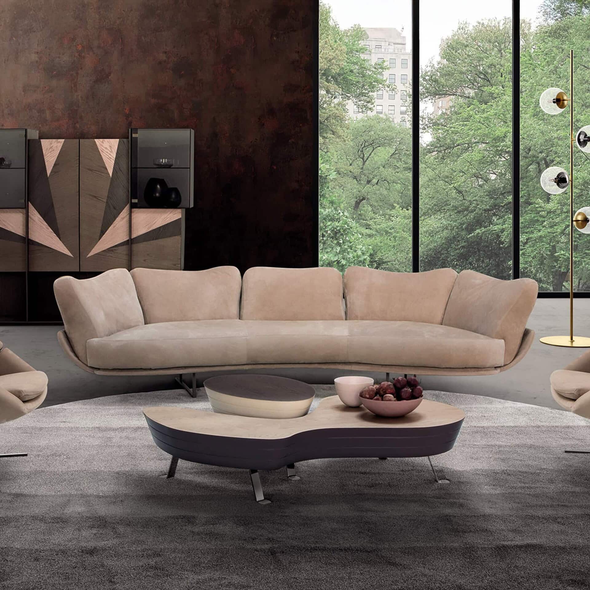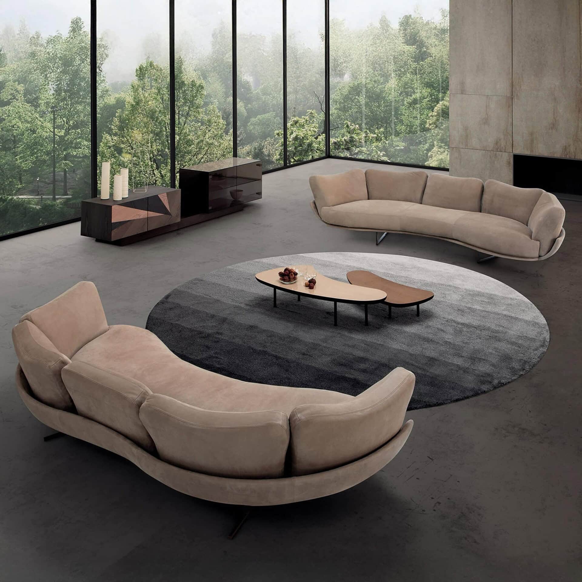 Built with meticulous Italian craftsmanship, the Freespirit Curvo features a sturdy internal frame padded with high-density polyurethane foam and wrapped in luxurious fabric or leather upholstery. The black nickel legs lend a contemporary edge and slightly elevate the profile for a light, floating appearance. Available in a wide range of modular configurations and fabric choices, the collection allows for customization to suit both compact and expansive interiors.