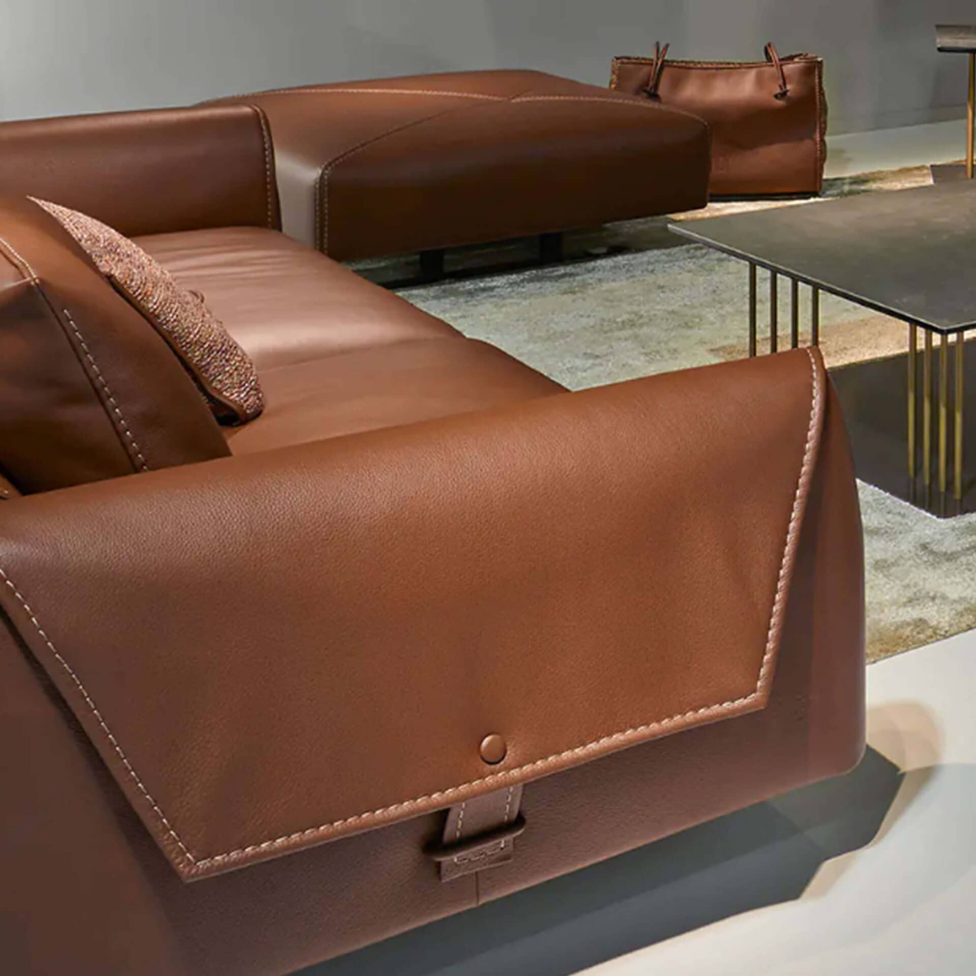 Elegant brown leather Barcelona sectional sofa with chaise lounge, perfect for contemporary living s.