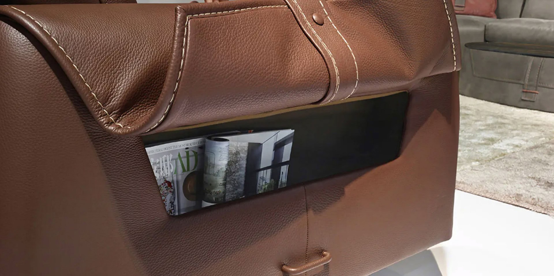 The Karl sofa by Gamma Arredamenti makes for the most comfortable spot in the house for relaxing and lounging thanks to the soft cushions and upholstery. Organize reading materials and keep them out of sight with built-in magazine holders on the sides of the sofa.