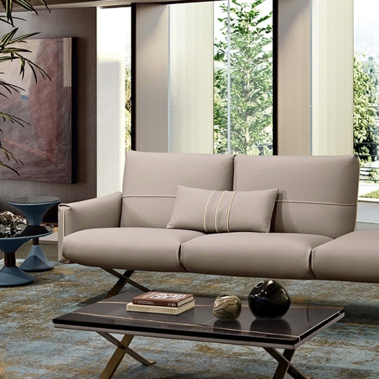The Rialto Sofa by Gamma features upholstered leather that is soft, refined, and neutral to seamlessly fit into any desired living space.