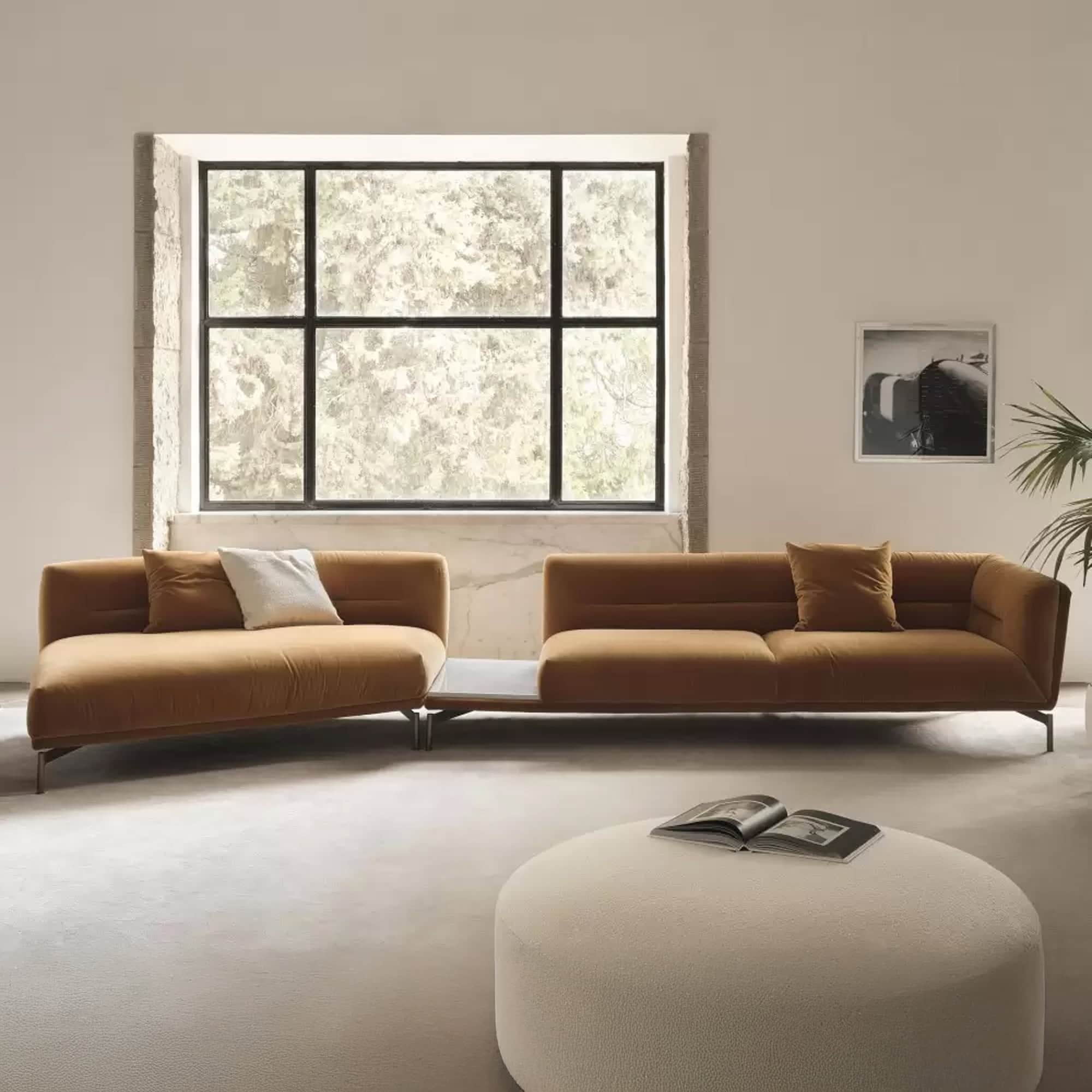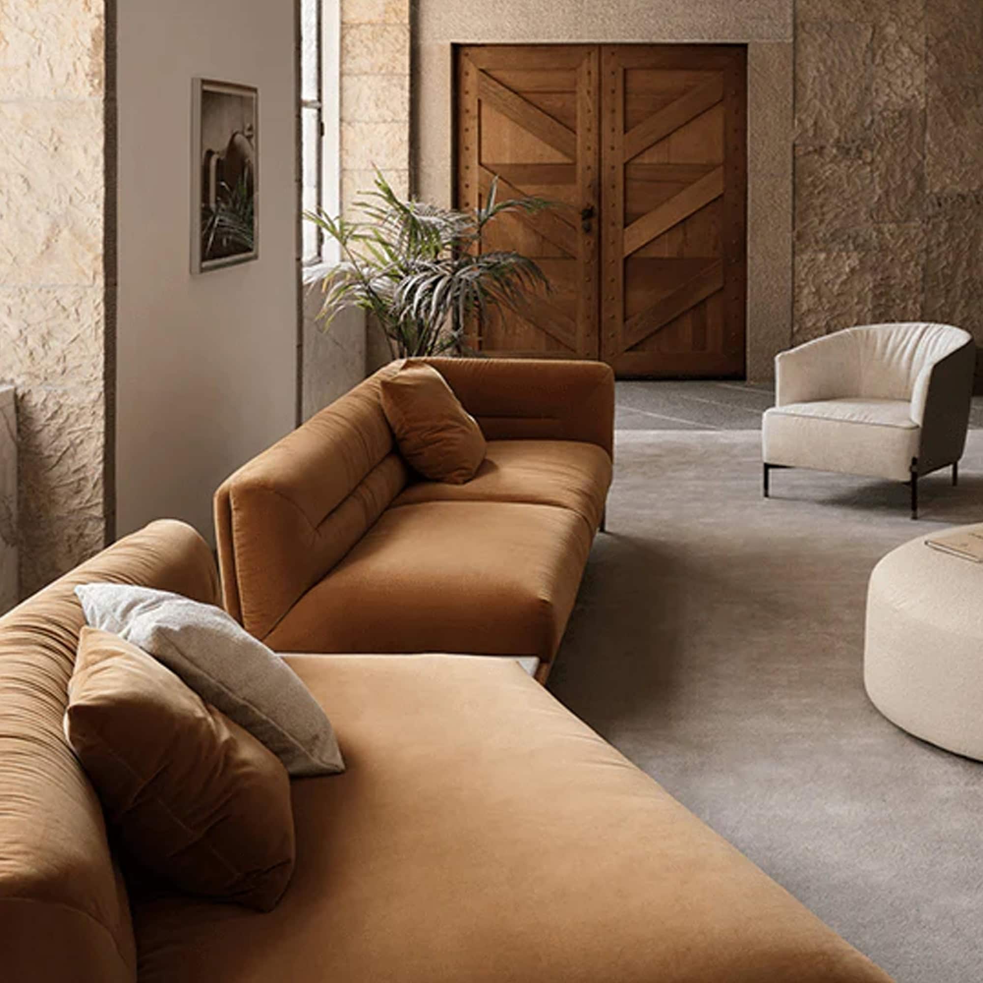A sophisticated blend of refined structure and soft geometry, the Gary Sofa exemplifies Nicoline's commitment to elevated comfort and Italian craftsmanship. Its silhouette pairs gentle contours with firm, architectural lines—perfectly balancing modern sensibility with classic elegance. The low back and deep seating create a laid-back, luxurious lounge experience that feels as good as it looks, making the Gary Sofa ideal for both formal living spaces and casual relaxation.