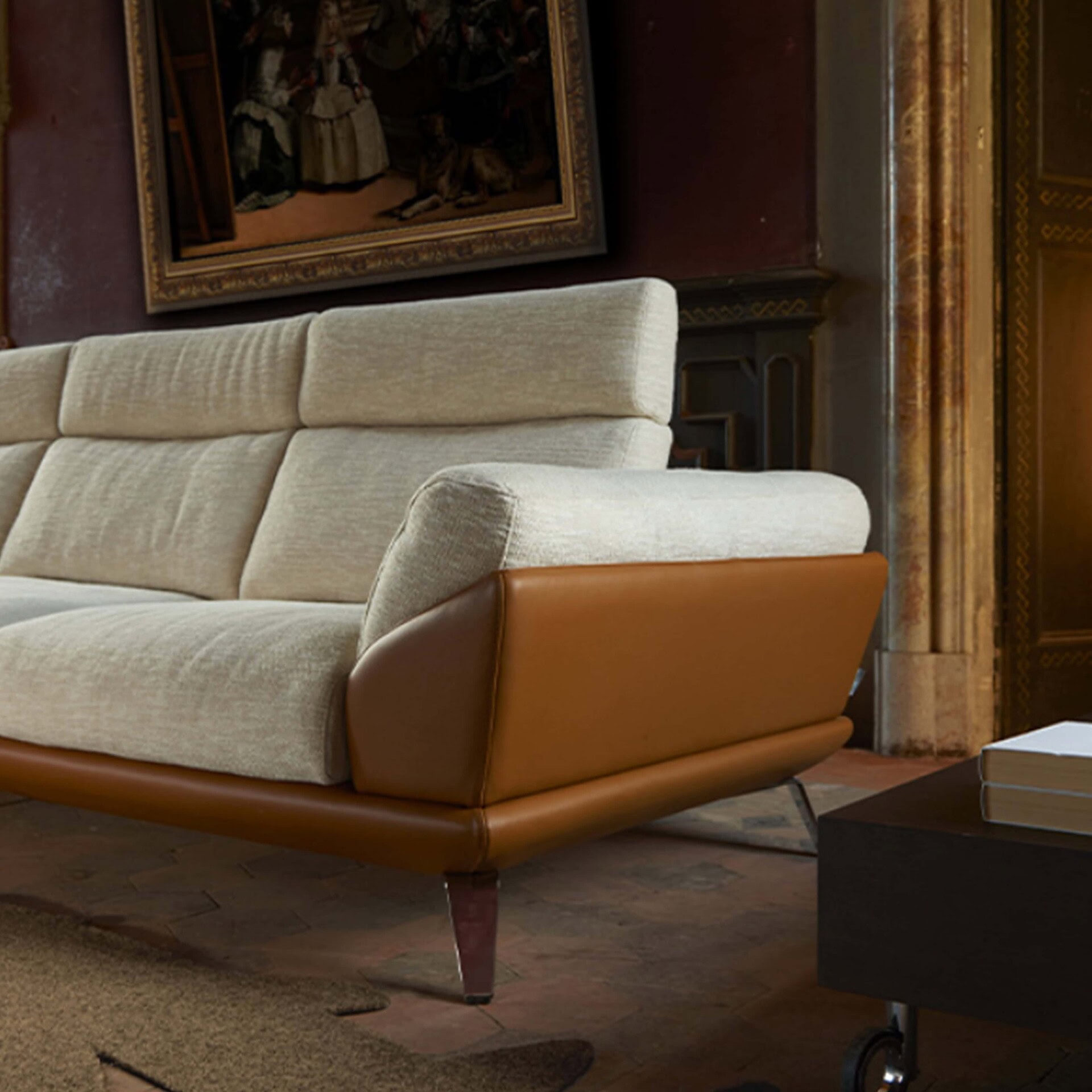 The Gorini Dumas Sofa is an elegant day bed that makes relaxing easy. Crafted from Italian leather and finished in Italy by master artisans, it is bound to make a statement in any modern living space. Its neutral two-toned color palette makes for an exceptional paring within the living room space where light, airy colors are present. A mix of refined leather and high quality fabric, Dumas stuns in every aspect while taking every expectation for an outstanding space to the next level.