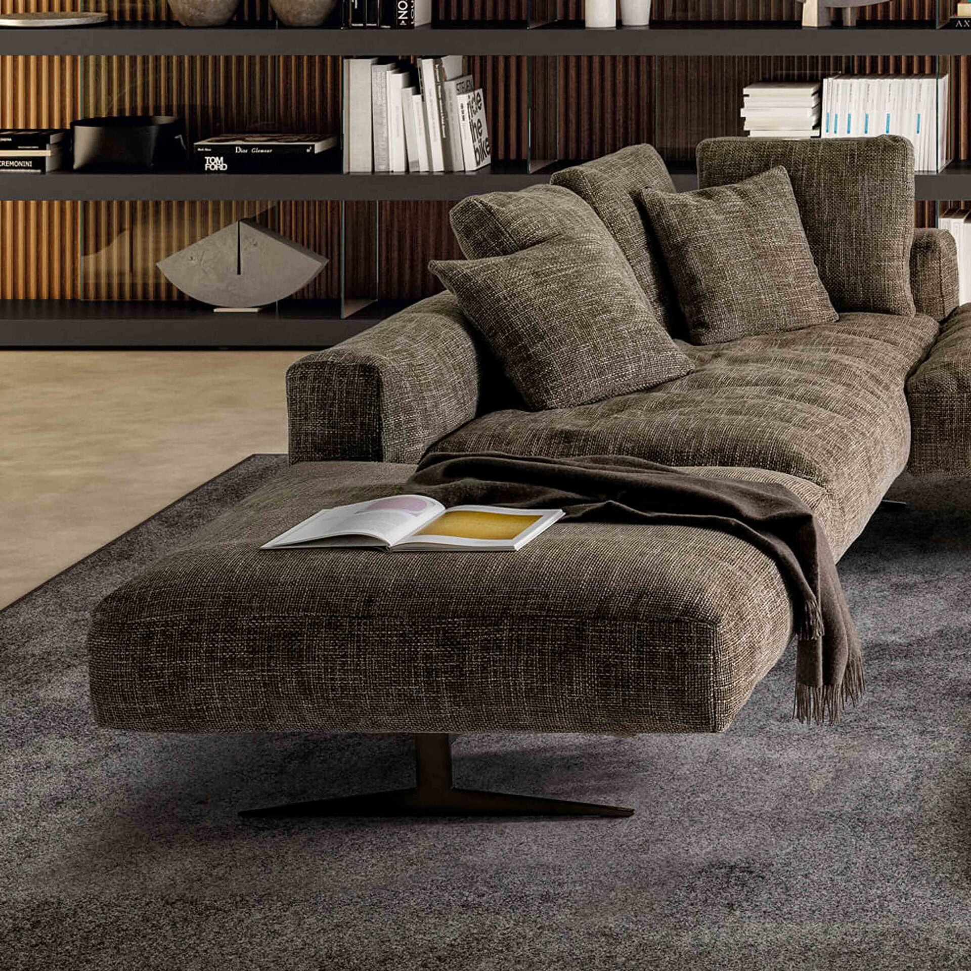 The Air sofa combines soft, supple forms with a sophisticated modular design. Ultra-comfy and inviting, it is made with elastic and long-lasting materials and is padded with certified goose down. You can create infinite configurations in only a few simple steps thanks to the aluminium frame technology and patented coupling mechanisms for the seats and backrests. Any room that houses the Air Soft sofa will be infused with ethereal, innovative style thanks to the supports, which are available in Extrachiaro tempered glass or metal.