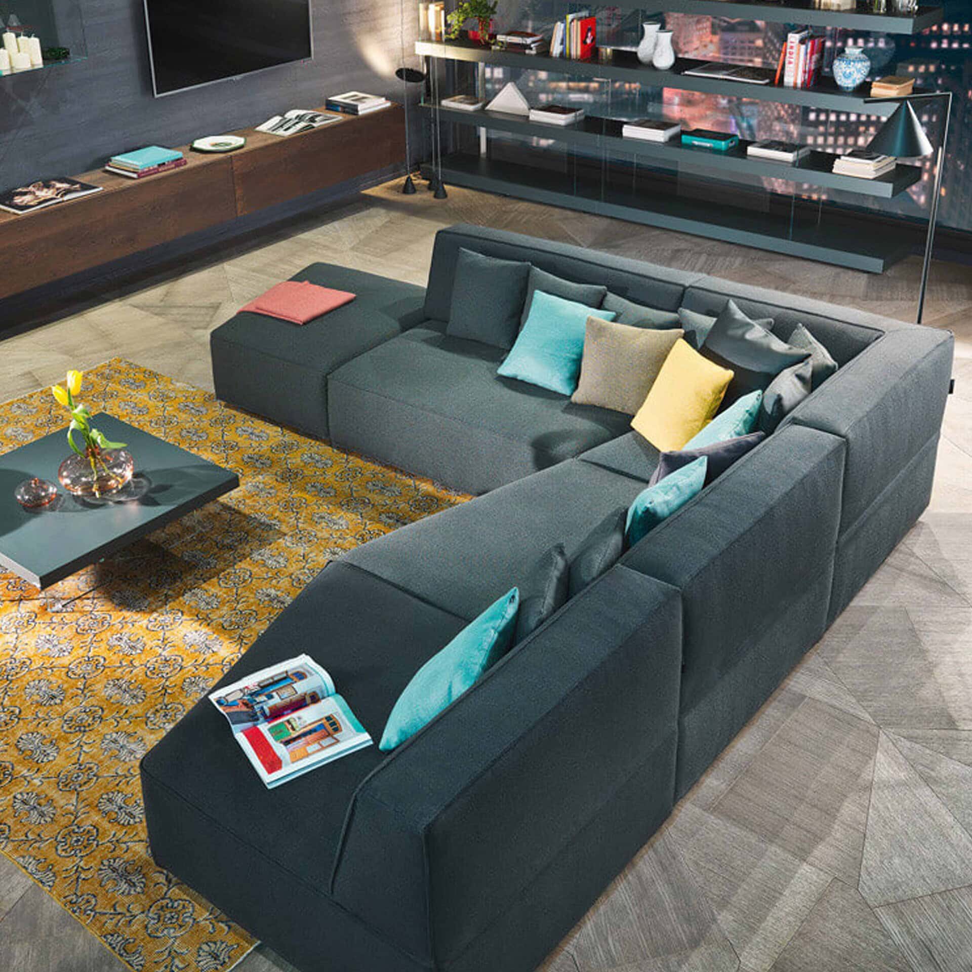 Developed from the same name system, the Slide Modular Sofa is comfortable and welcoming. By cutting a rectangle in half by an oblique line, two trapezium modules can be formed, each offering extreme compositional flexibility. It's the perfect blend of technology and handcrafted expertise that creates unique, original compositions that bring personality and character to your living room.