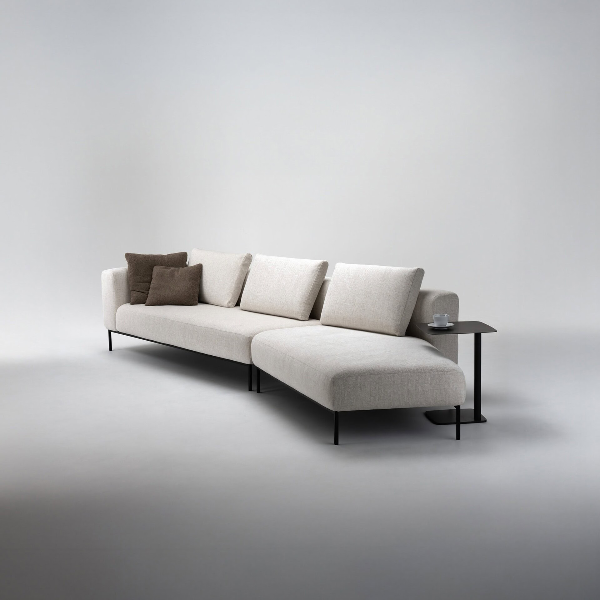 The Le Corbin Modular Sofa by Trica offers a refined balance of comfort and modern architecture. Its low, linear silhouette is grounded by slim metal legs and clean, tailored detailing that feels effortlessly contemporary. Plush box-edge seat and back cushions create a harmonious blend of structure and softness, while its modular design lets you adapt the layout to suit open living spaces or intimate lounges with ease.