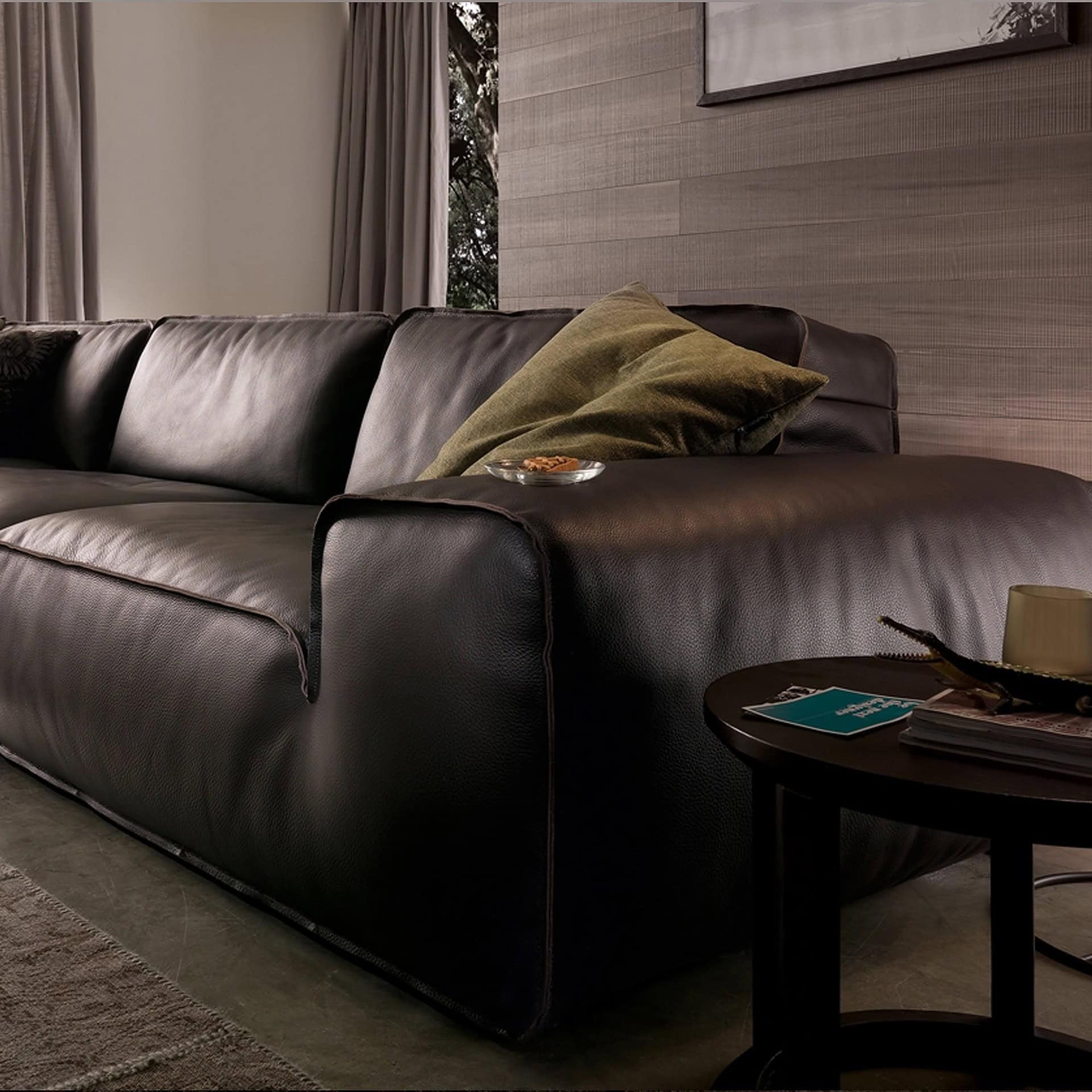 The Avenue Sofa is a refined tribute to the rhythm and sophistication of American urban design, blending architectural lines with inviting comfort. Its generous, sculpted form is softened by plush cushions and accented with thoughtfully crafted details—visible stitching and raw-cut leather edges that highlight the artisanal quality of its construction. Designed to anchor the living room with understated elegance, the Avenue is equally suited for relaxed lounging and stylish entertaining.
