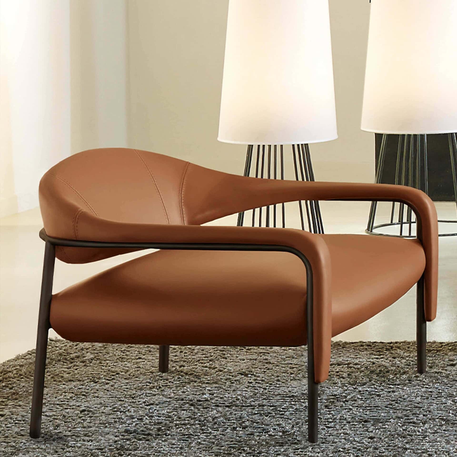Occasional chair in leather with a modern vibe. It is a versatile piece of furnishing which will fit perfectly into any setting – a bedroom, lounge and even a hotel lobby. This downsized armchair exudes a laid-back contemporary vibe. Although it looks rigid, the shell is, in reality, highly comfortable. Pretty was designed to pair harmoniously with all the seating systems from the Gamma collection.