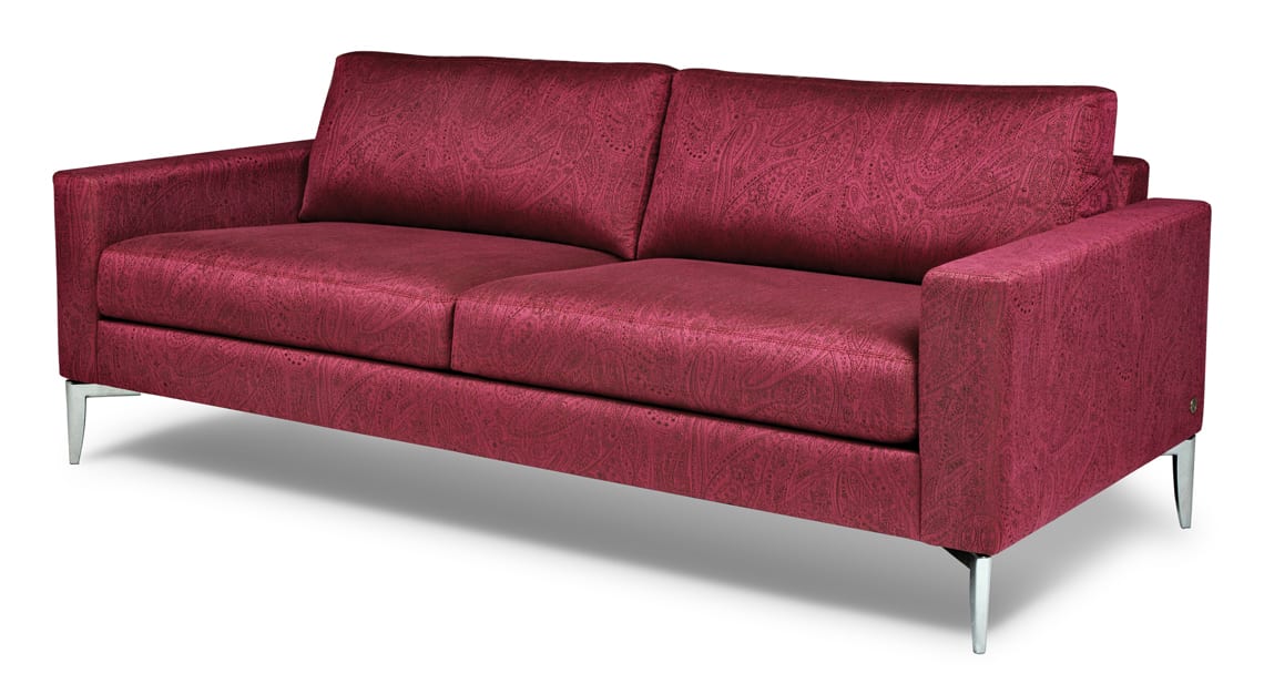 Metal legs. Contrasting seat and back cushions. Leather, fabric, or Ultrasuede®.