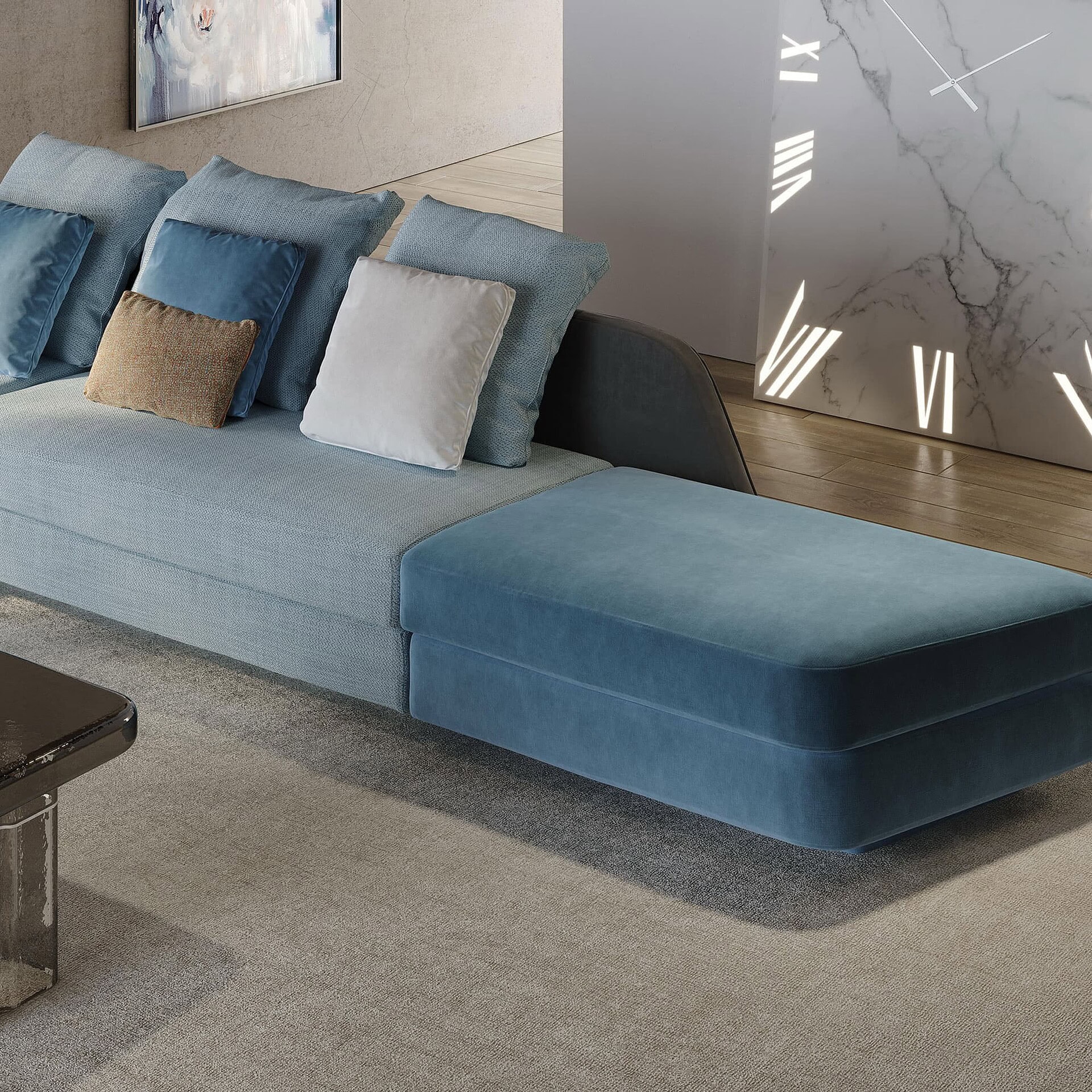 The Stratum Sofa reimagines modular seating with a design that draws inspiration from geological stratification. Its multi-level construction creates an interplay of depth, texture, and shadow, offering a sculptural presence that enhances any contemporary living space. Every element—from the meticulously layered backrests to the soft, architectural seat cushions—contributes to a sense of grounded elegance and tailored comfort. Optional contrast piping on Layer 2 adds a refined visual accent, amplifying the sofa’s dimensional identity.