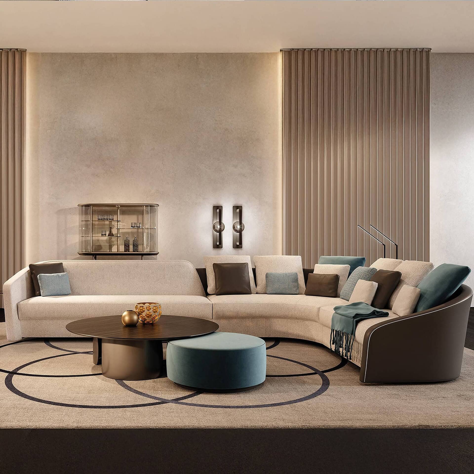 The Stratum Sofa features a durable internal wooden frame, layered with plush polyurethane foam and non-deformable polyurethane seat cushions for enduring comfort and support. Upholstery is available in a wide selection of premium fabric and leather options, allowing for full customization. For added definition, Layer 2 can be accented with contrast-color piping, offering a unique visual signature tailored to your space.