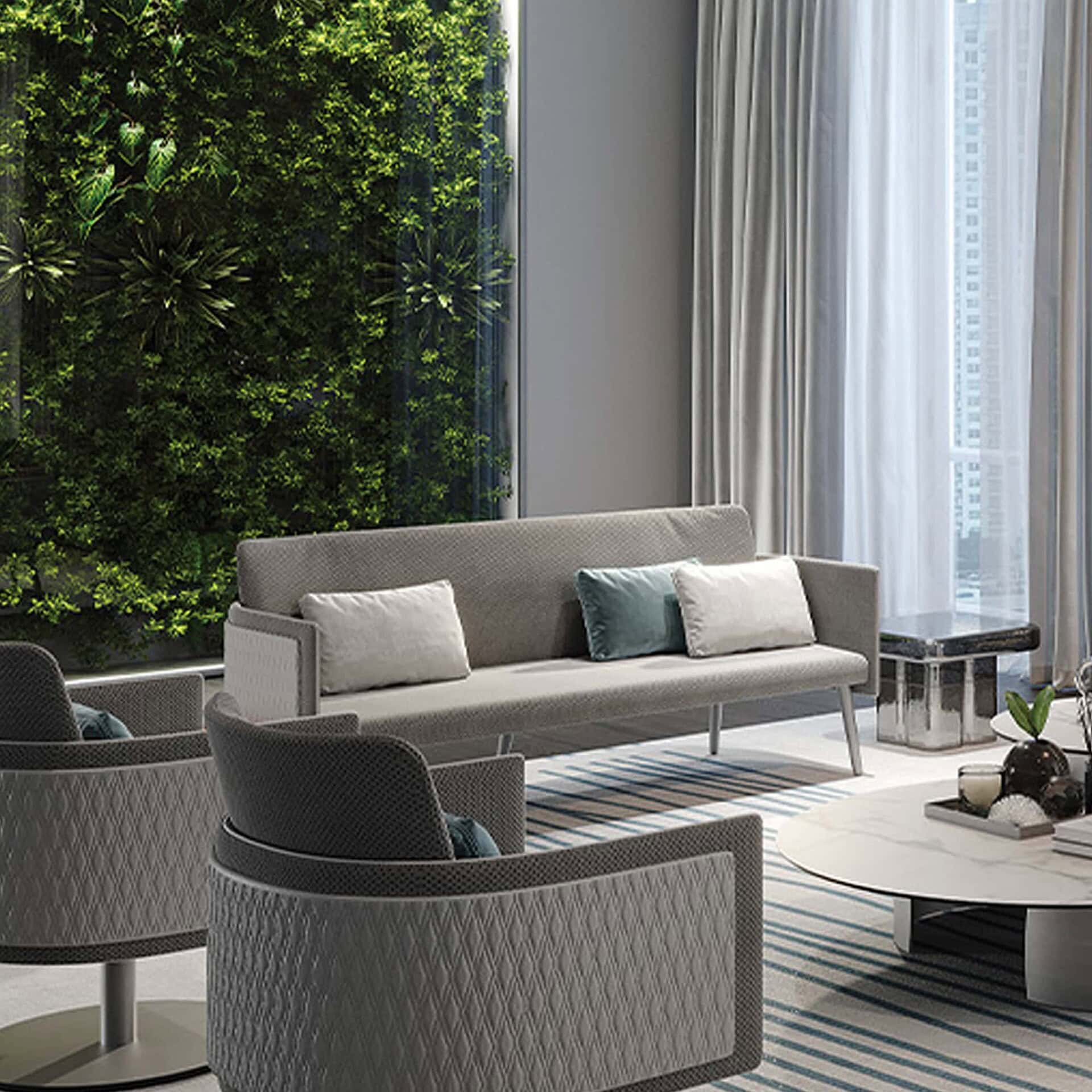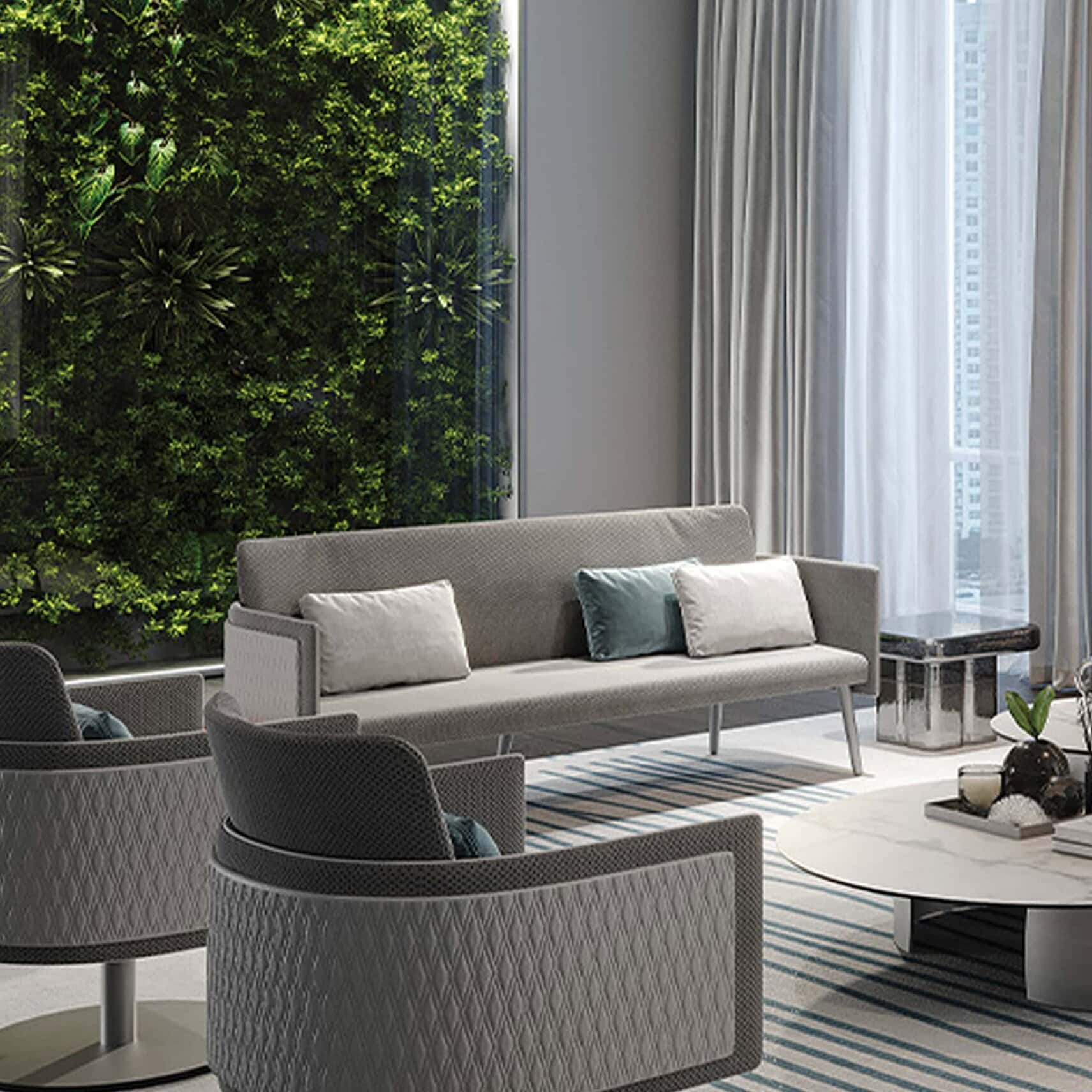 The Amet Sofa Lounge by Reflex redefines comfort with a modern twist, effortlessly merging refined Italian design with luxurious materials. Designed by Emanuele Missaglia, this low-profile lounge piece features gently curved contours and meticulous detailing that exude elegance from every angle. Ideal for upscale living areas or stylish lobbies, the Amet Sofa Lounge creates a welcoming ambiance while making a sophisticated visual statement.