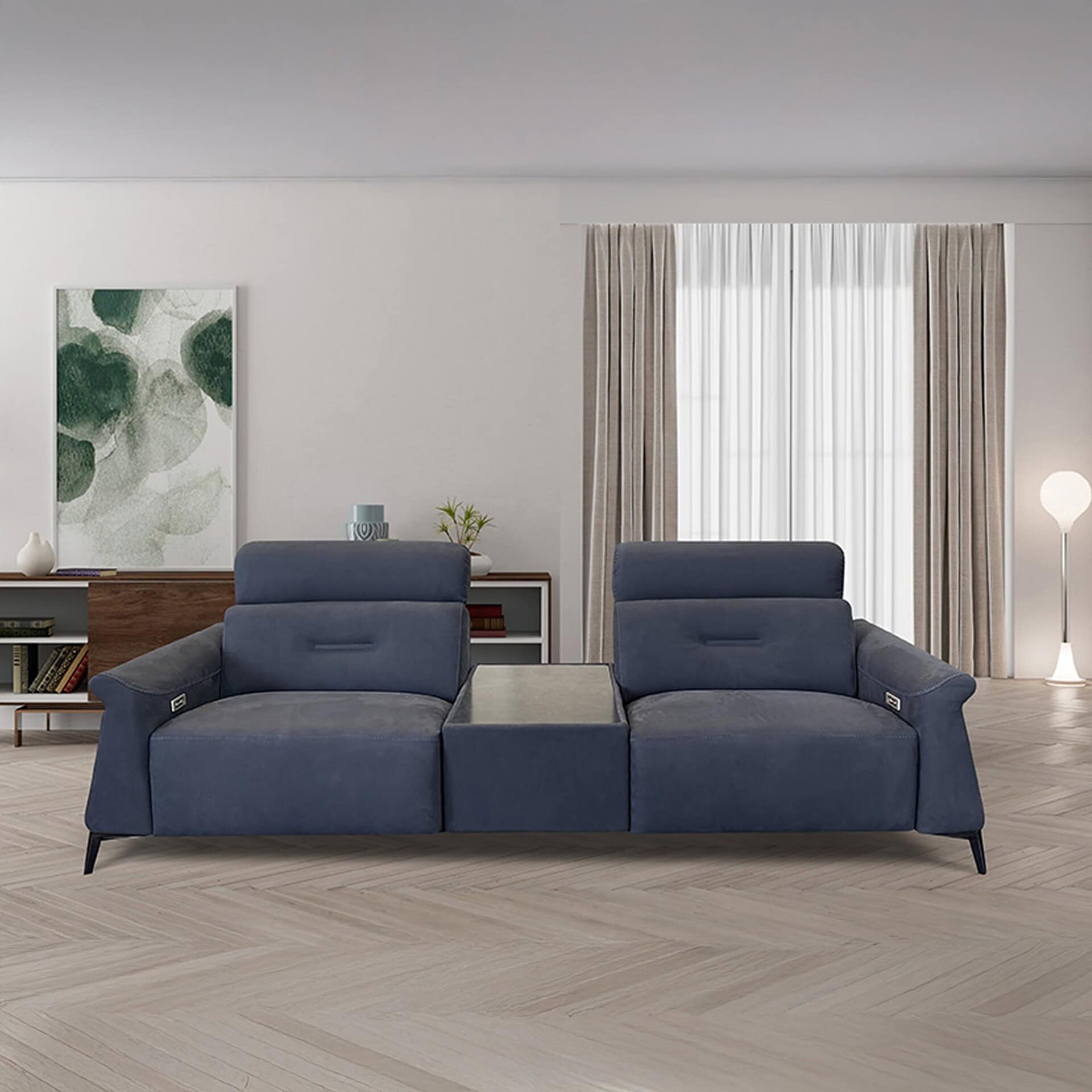 Designed with versatility in mind, this modular sofa can be customized in size and configuration to fit a wide range of layouts and lifestyles. A built-in table element adds practical surface space without compromising the sofa’s sleek aesthetic. Whether lounging, entertaining, or simply relaxing, the Cool with Table Power Sofa offers a refined balance of style, technology, and everyday ease.